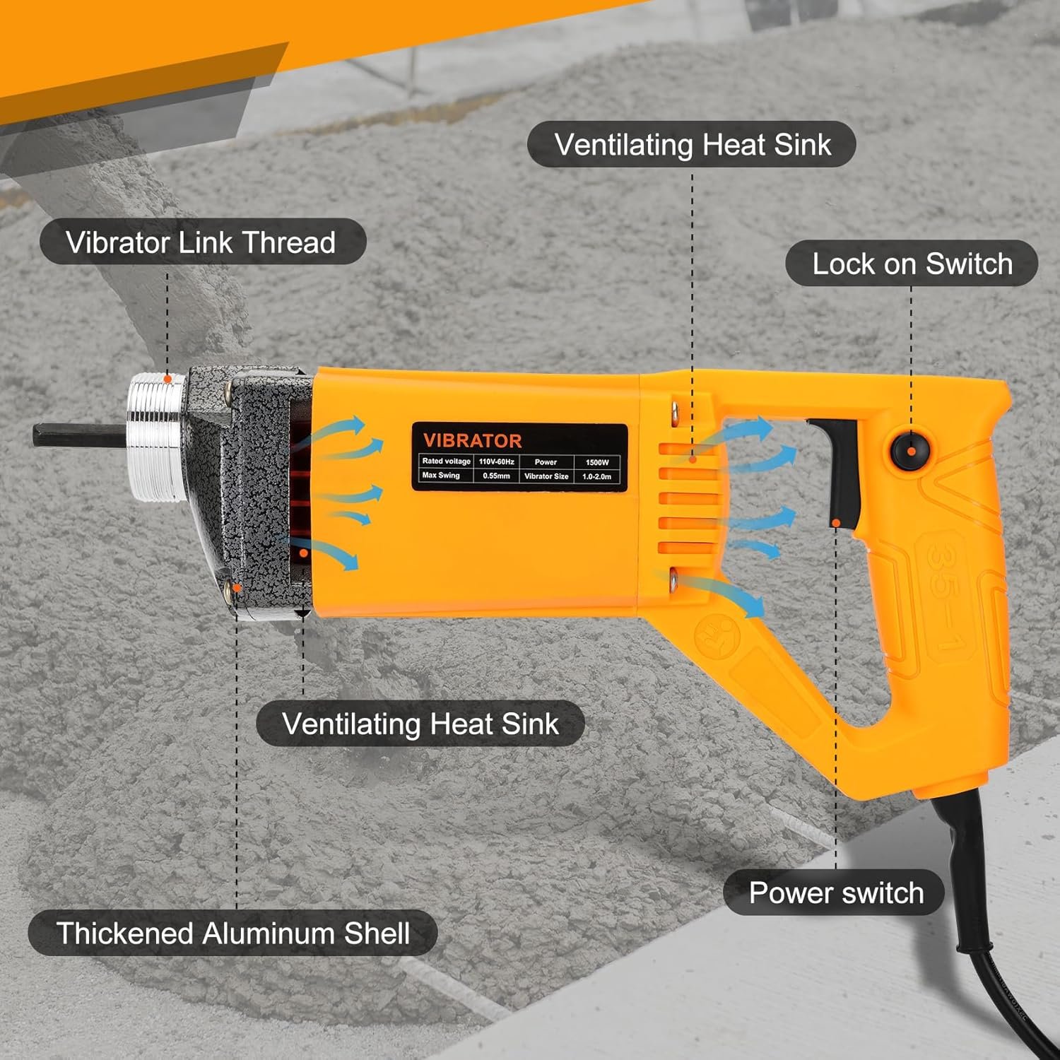Concrete Vibration Tool, 6.6 FT Copper Shaft Rod with 1500w Power Concrete Vibrator with, 14400VPM Concrete Vibration Tool, Portable Pencil Cement Vibrator Remove Air Bubble and Mix Concrete.