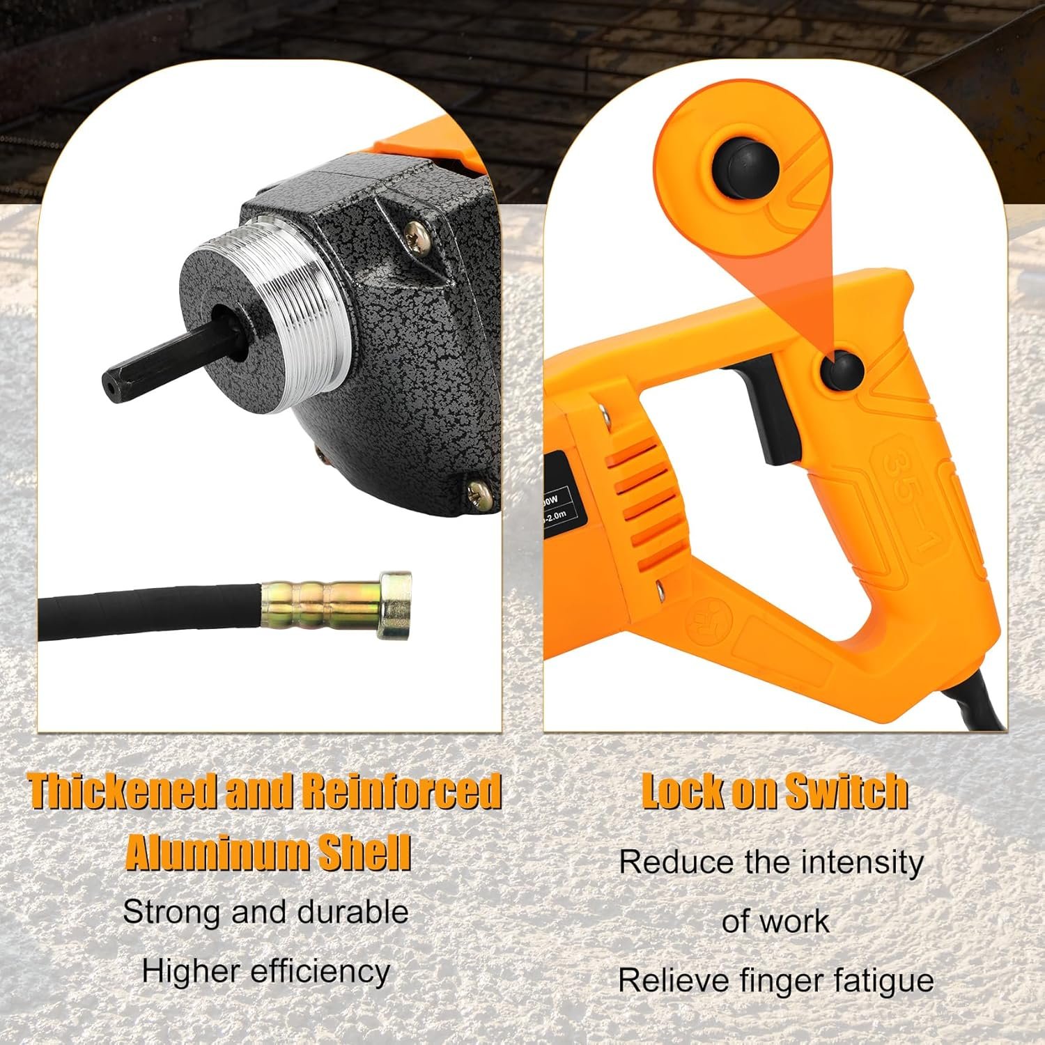 [Convenient design] Concrete vibration tool is provided with a locking button. It allows the machine to run without always having to press the trigger , reducing the work intensity and finger fatigue.