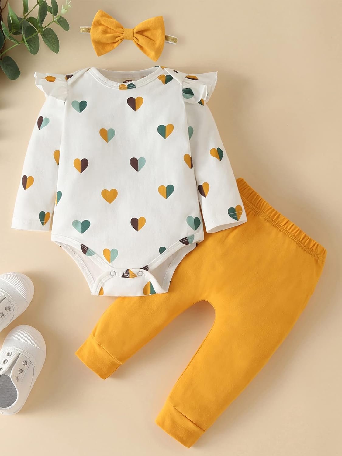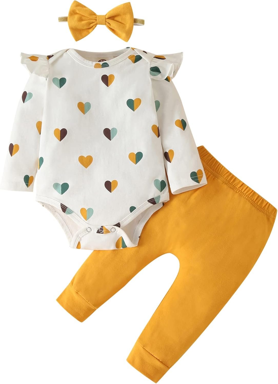 Are you looking for something durable, easy to wash, and infinitely cool for your little princess? She will grow up and be a Queen! We designed these amazingly beautiful CUTE BABY GIRL CLOTHES to brighten your cute little one’s day up a bit. Our cute fall baby girl clothes will make your little one charming and active on spring,fall/winter days.These perfect baby girl outfits have snap-up onesies for easier diaper changes. It is also embellished with heart print for an exceptional look. The ruffled layered shoulder long sleeve romper and frill pants will highlight your beauty. It is completed with matching bow headbands, you can’t go wrong.These adorable 3pcs clothes for baby girls are perfect for spring fall winter; only the best for a future Queen! We love this style with some toddler shoes, statement accessories, and shades for a look that we are loving.