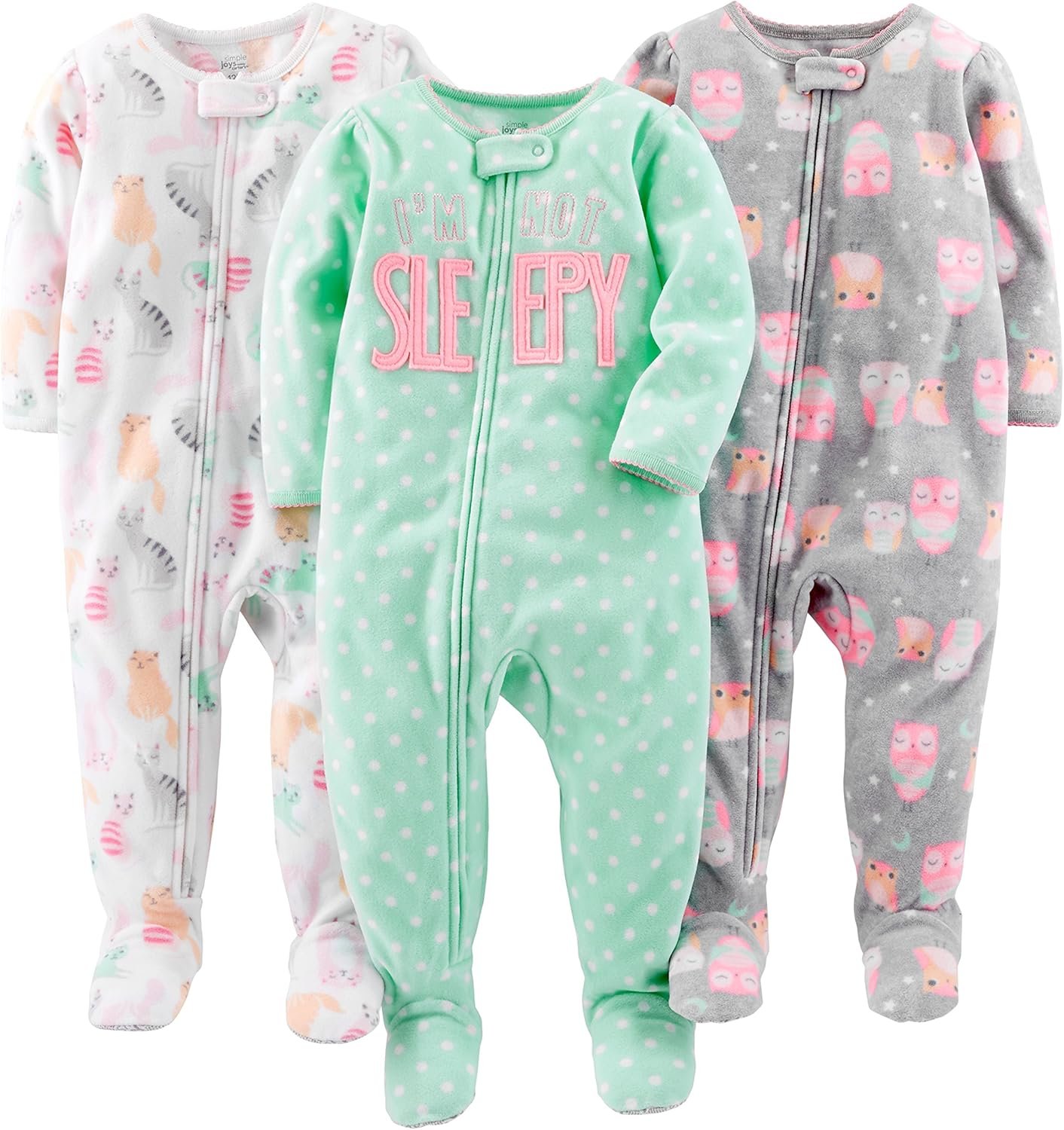 Simple Joys by Carter’s Toddlers and Baby Girls’ Loose-Fit Flame Resistant Fleece Footed Pajamas, Pack of 3