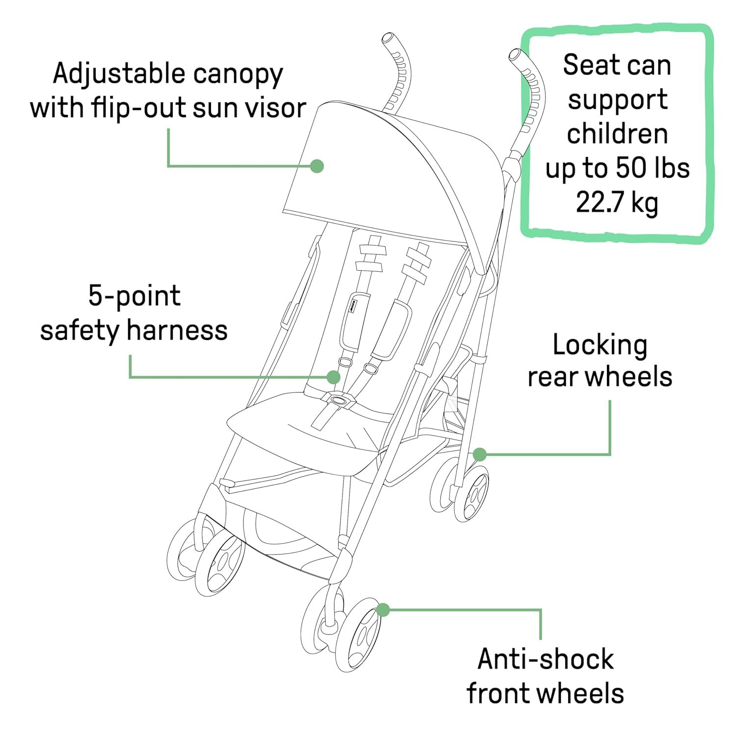 With the Summer by Ingenuity 3Dlite ST Convenience Stroller, you don’t have to sacrifice any features you want in a stroller! This infant stroller from a Top Manufacturer of Umbrella Strollers* has a durable, lightweight and stylish steel frame that makes it the perfect travel stroller. With a compact, easy to fold frame, this stroller is a parent must-have that’s perfect for running errands, quick trips, or long vacations. Features in this lightweight stroller include: a large seat area, multi-position recline, 5-point safety harness, anti-shock front wheels, lockable rear wheels, adjustable and removable canopy with flip out sun visor, easy compact fold and auto lock, extra-large storage basket, rear storage pocket, and cup holder. *(Circana, Retailer Tracking Service, U.S., Strollers-Umbrella, Ranked #2, dollar sales, YTD November 2023)