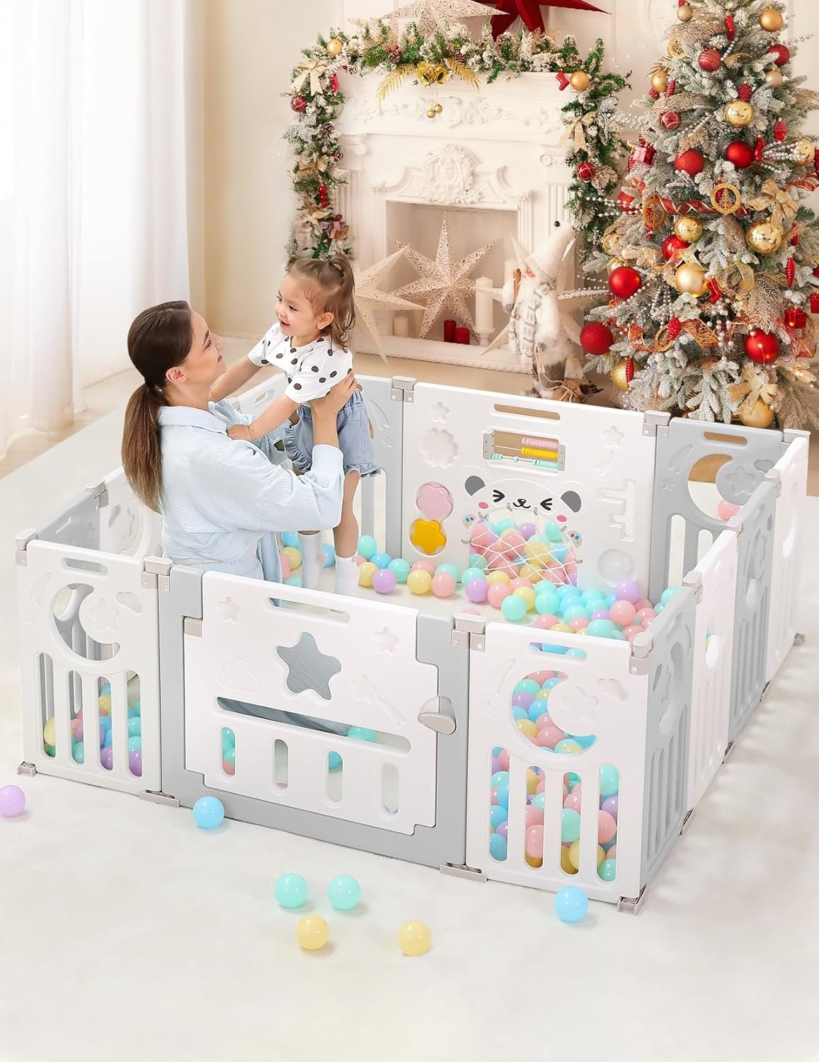 【PERFECT GIFT CHOICE】If you’re celebrating a new arrival to the family, a baby shower gift is a thoughtful gesture, not only for the baby but for their parents and caregivers, too. Our baby playpen is a practical gift choice that provides a safe space for babies to move around as they embark on their exciting journey of learning to walk, allowing parents to have their hands free.