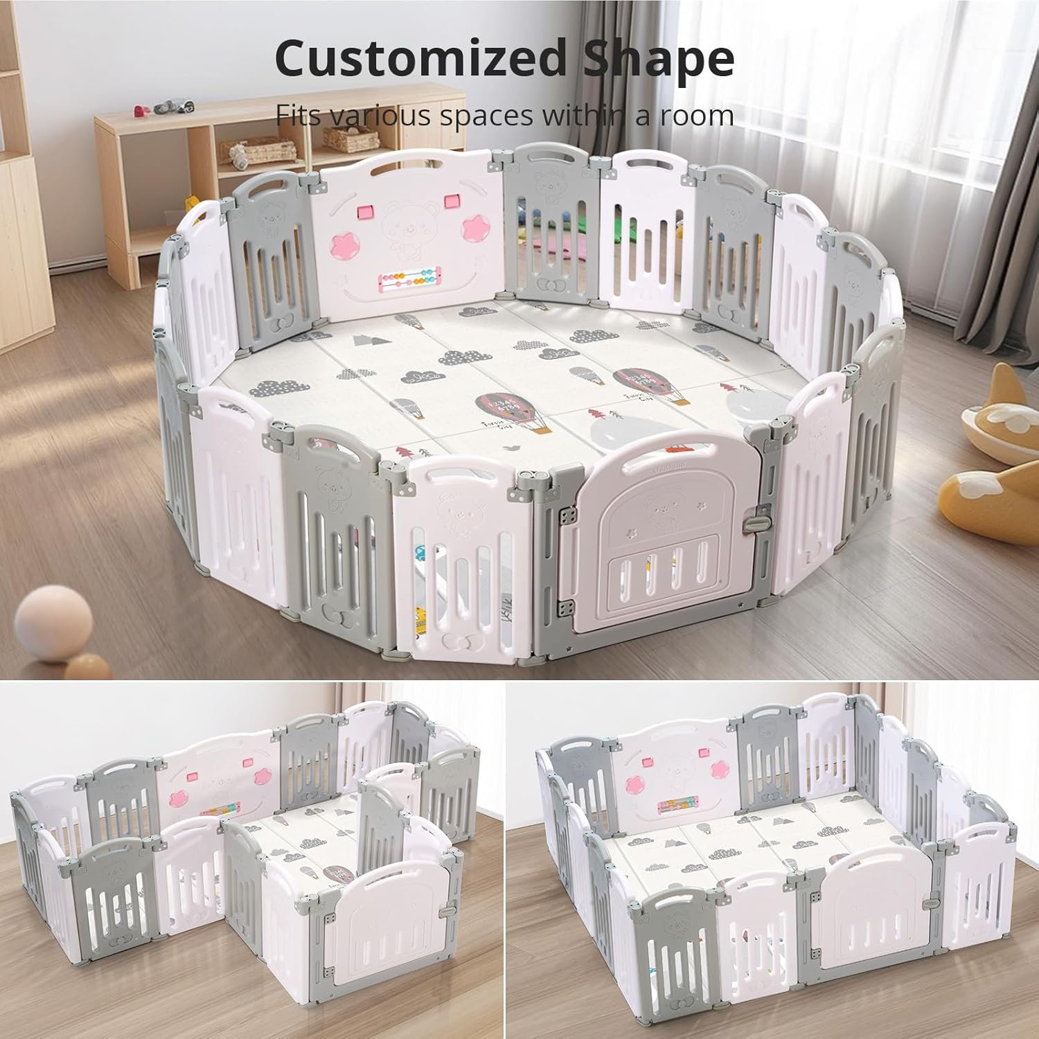 Uanlauo Baby Playpen, 18 Panel Foldable Play Yard for Toddlers, Easy Assemble Safety Baby Fence (Grey+White)