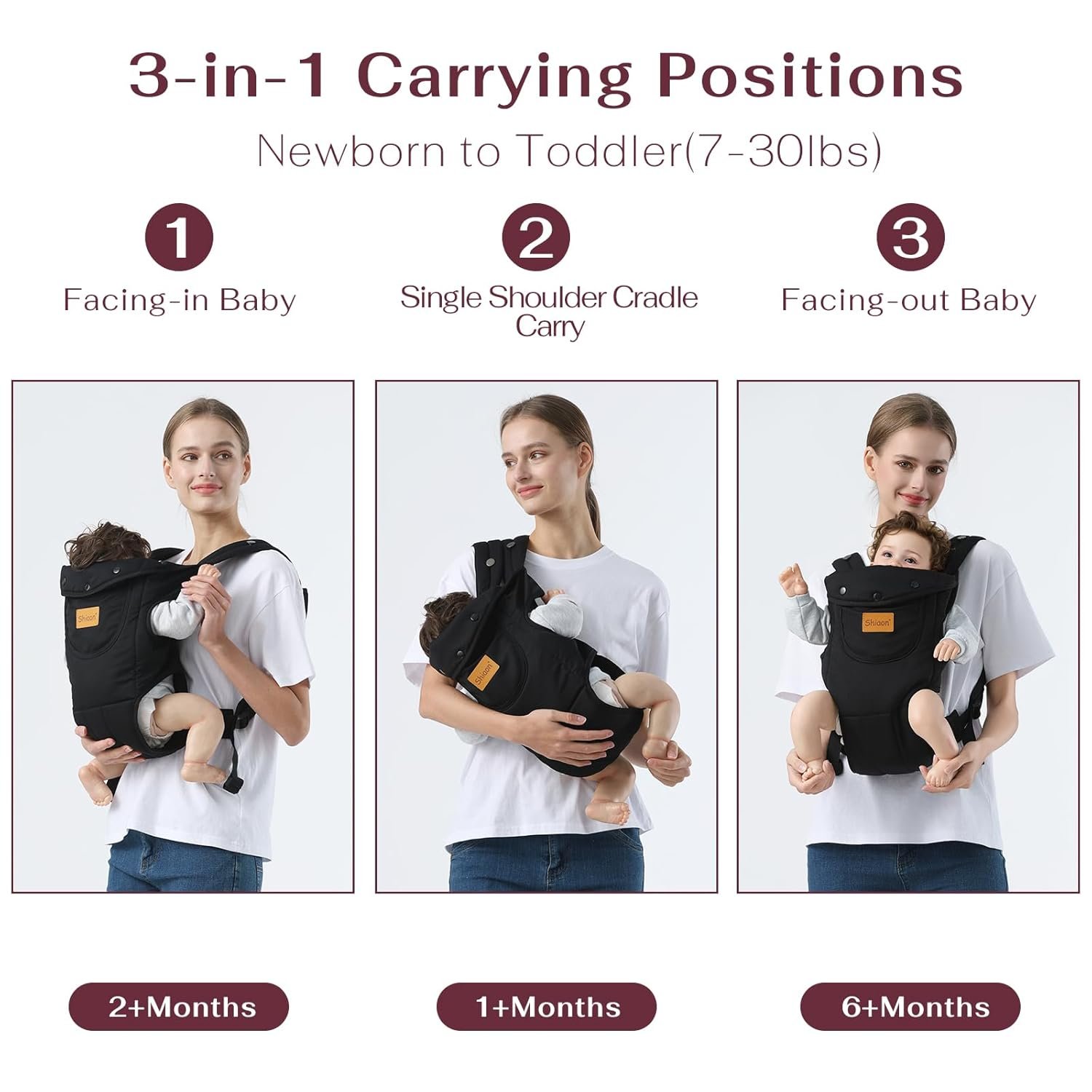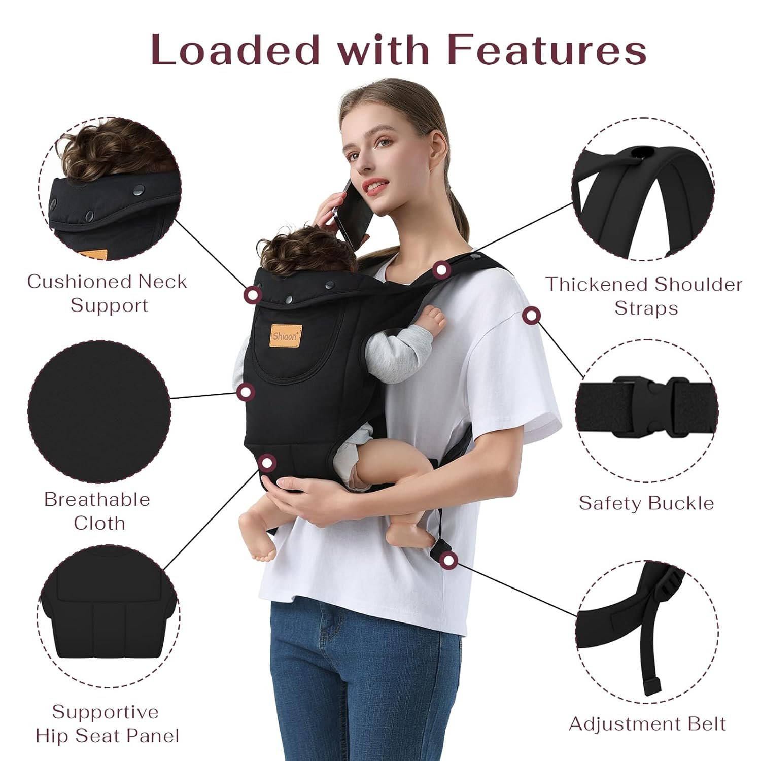 Baby Carrier Newborn to Toddler(7-30lbs), Toddler Carrier Baby Holder Carrier with Adjustable Shoulder Strap, Chest Carriers, Black