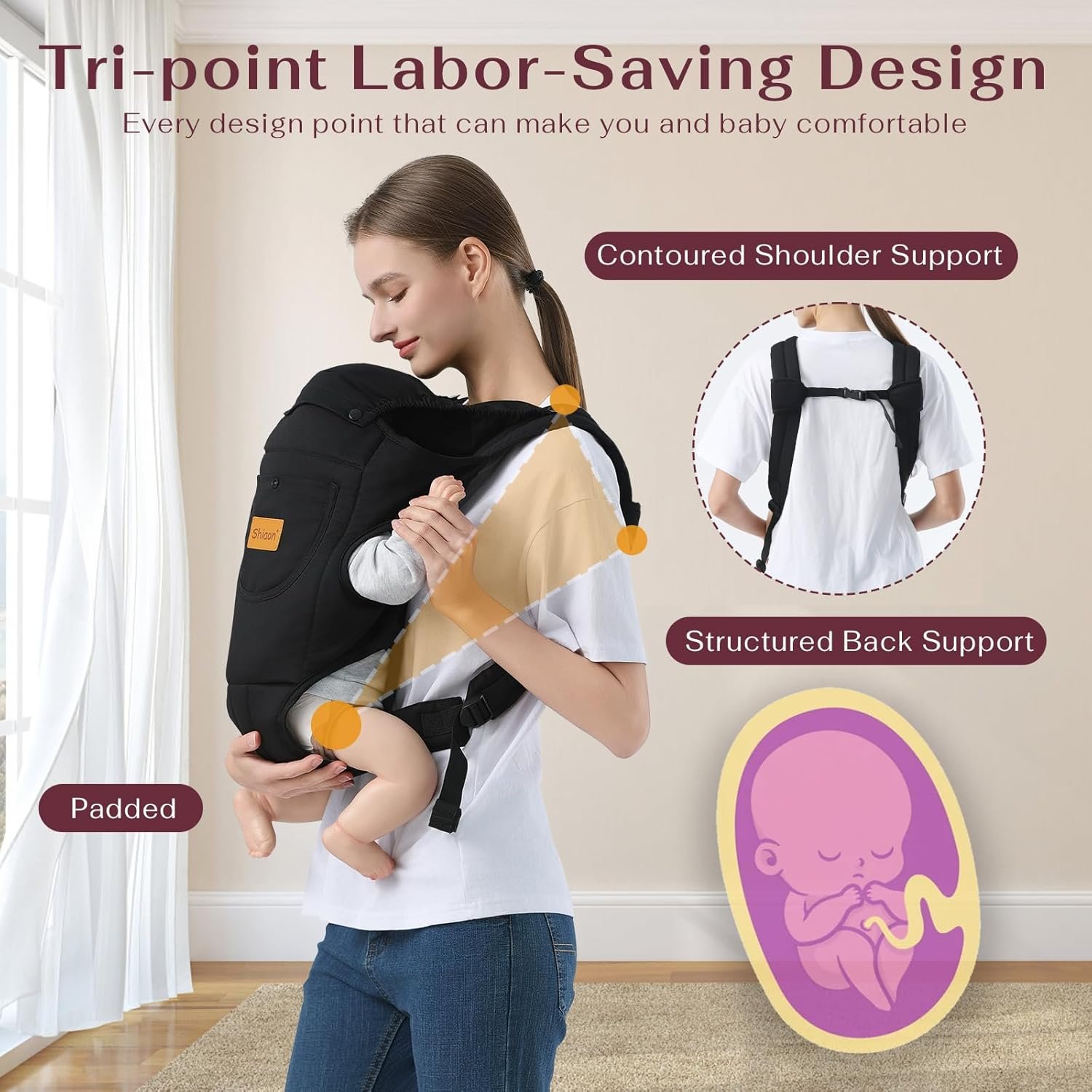 【M Position Design】Shiaon infants carrier allows babies to sit astride, Ergonomic natural “M” position design to ensure baby’s healthy hip development, and help 0-1 year old babies develop healthy hip bones and spine.