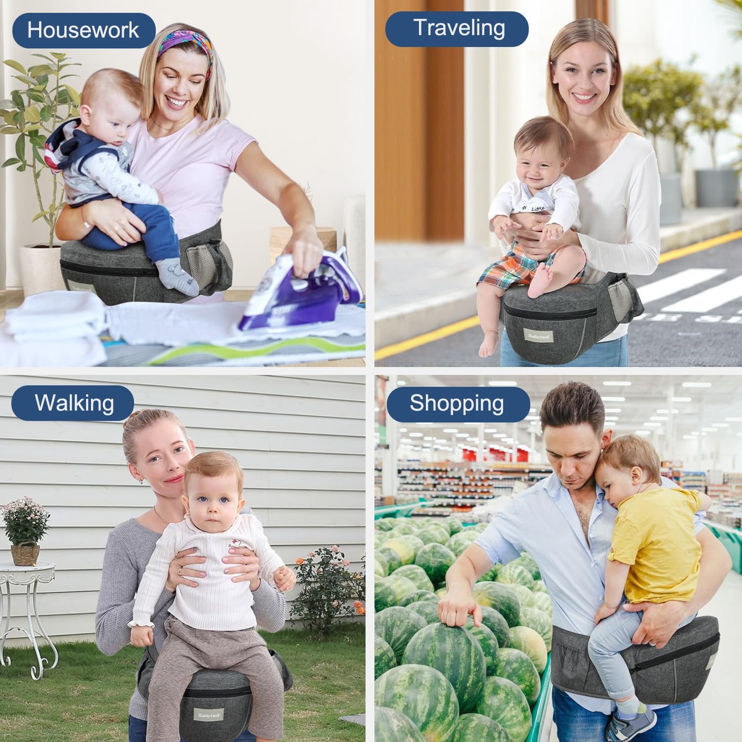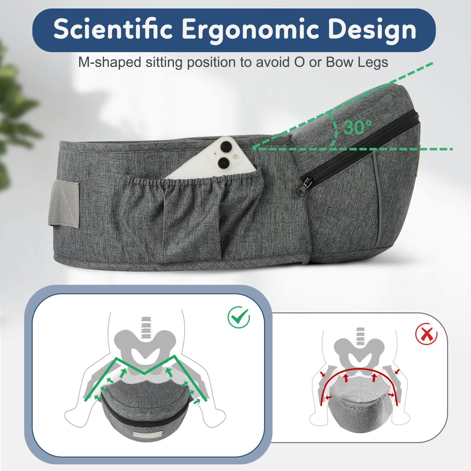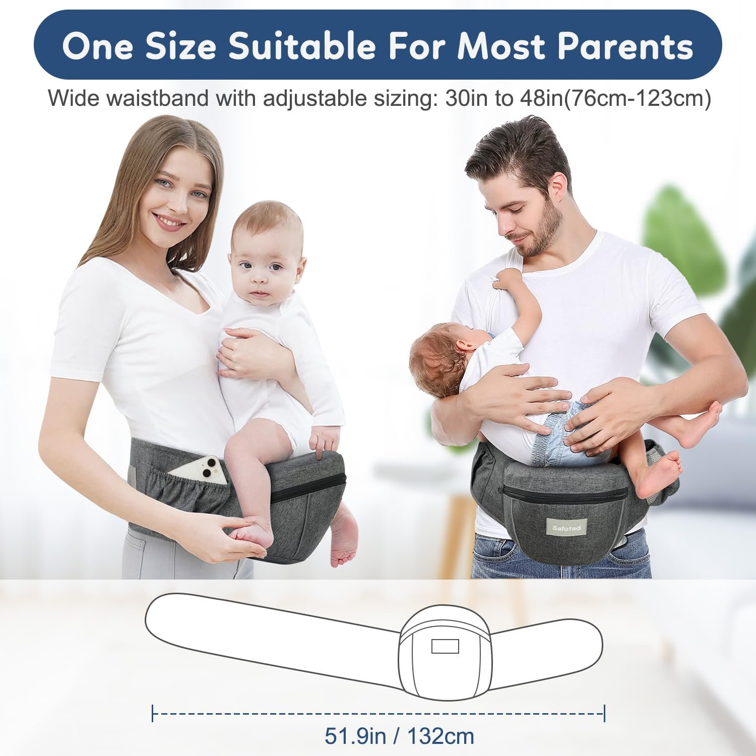Breathable Mesh Fabric: The baby holder’s waistband is lined with breathable mesh fabric, providing comfort and ventilation for parents during summer use. Imagine enjoying a warm sunny day at the zoo or on a hike without the discomfort of excessive heat. This thoughtful design helps reduce stress and keeps both parent and child cool and comfortable.