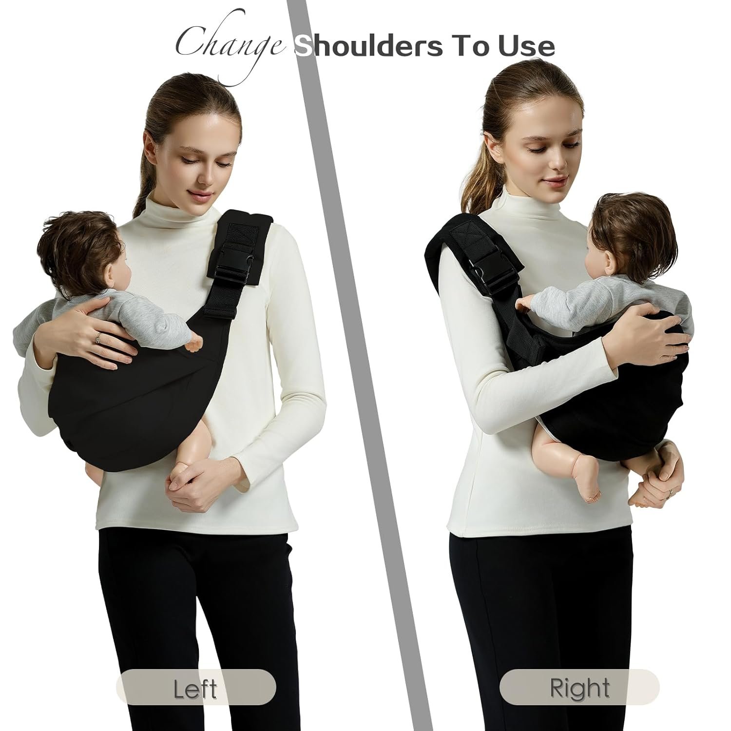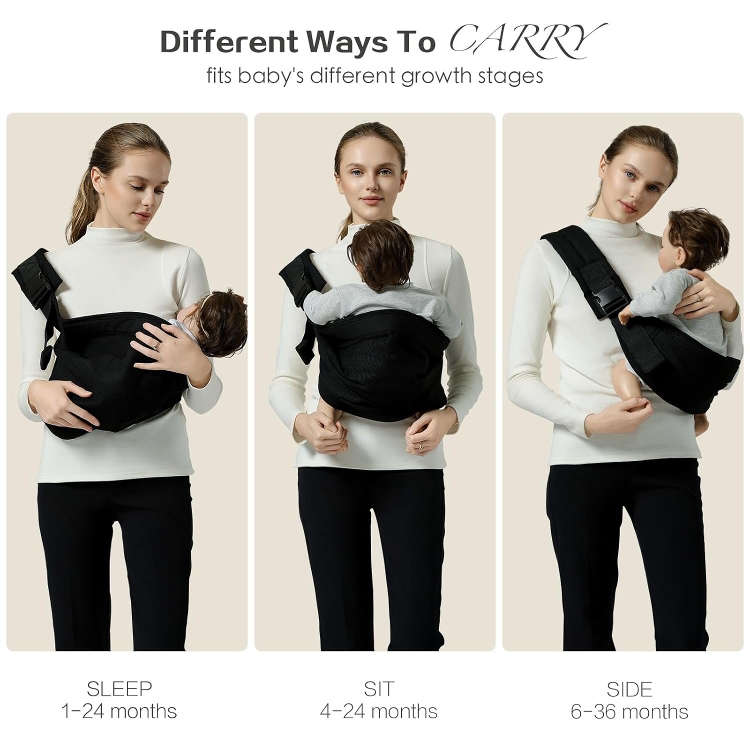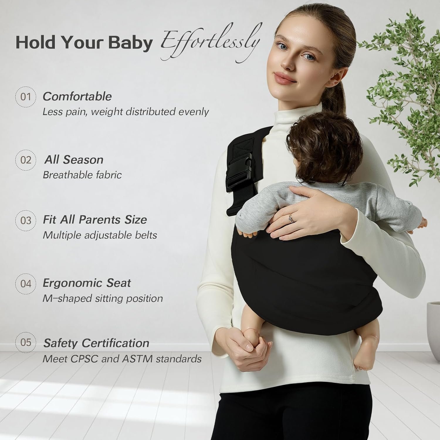 Baby Sling Carrier, Toddler Carrier Sling with Double Safety Buckle and Adjustable Shoulder Strap, Baby Carrier One Size Fits All, Black