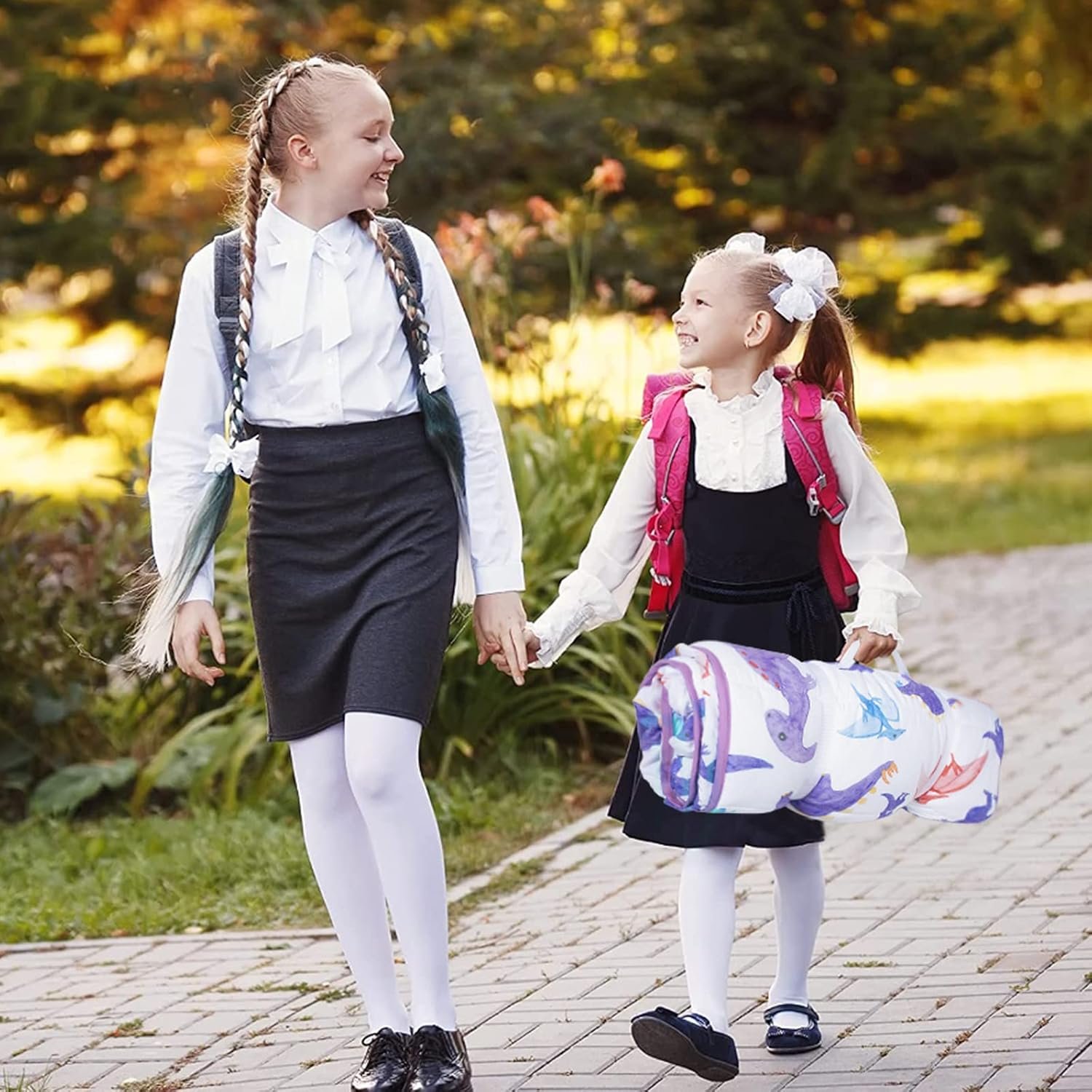 All-in-one Design: Combines a sleeping mat, blanket, and pillow in one. The detachable pillow has a thickness of 4.5 inches. The upgraded elastic design is durable and sturdy, with a convenient handle and a name tag, making it easy to roll up and carry