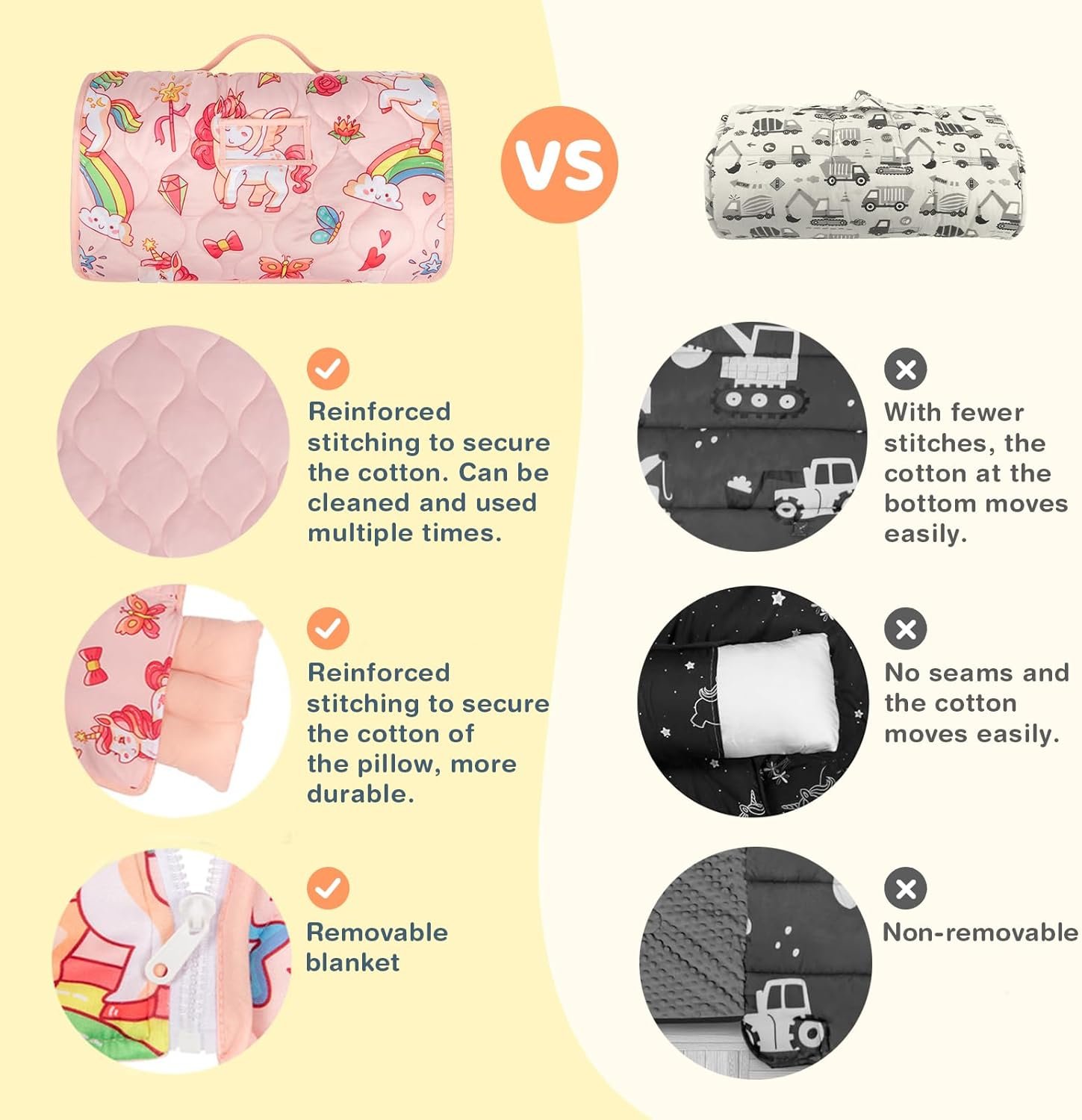 3. Multipurpose Nap Pad (pillow and blanket are removable): Kids nap mats with pillows and blankets are a great choice for preschool, kindergarten or daycare . This daycare nap blanket is easy to use, store and carry, and can also be used at home, camping, outdoor activities, picnics, etc