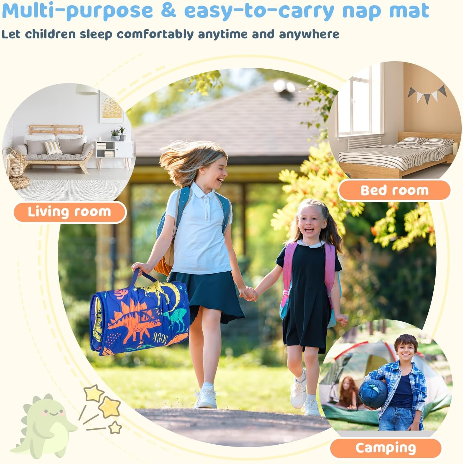1. Upgraded Extended Version: The napping mat length is 55 inches long and fits most children ages 2 to 7 years old. Our sleeping mat feature playful cartoon patterns and bright colors, full of childlike fun and joy. Nap mats for preschool designed specifically for children create a cozy, warm nest for little ones, allowing them to feel protected while enjoying a good night’s rest and sweet dreams