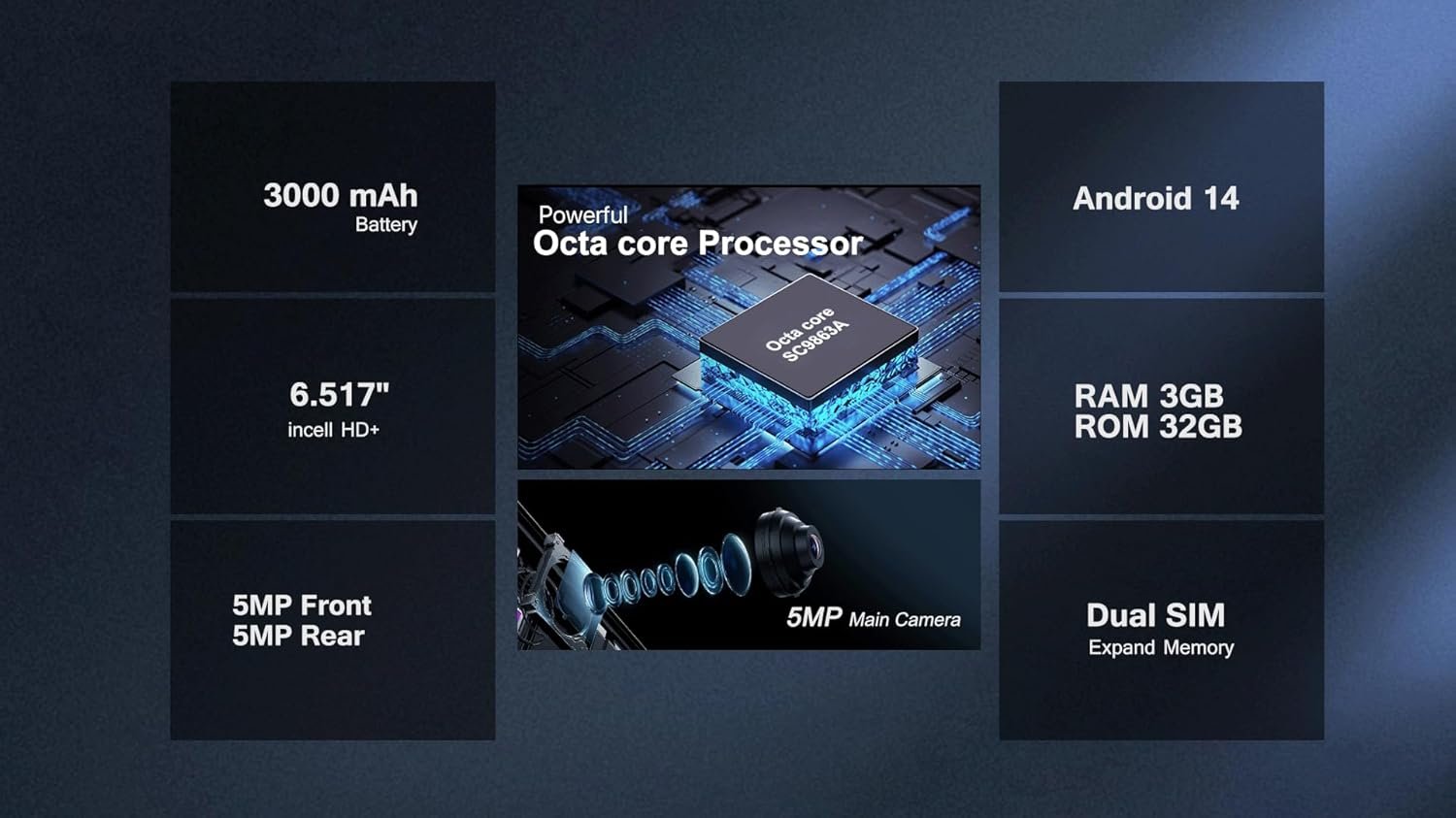 🚀 Smooth Performance with Android 14 – Powered by an Octa-core processor (up to 1.6GHz) and 3GB RAM, delivering a responsive and efficient experience.