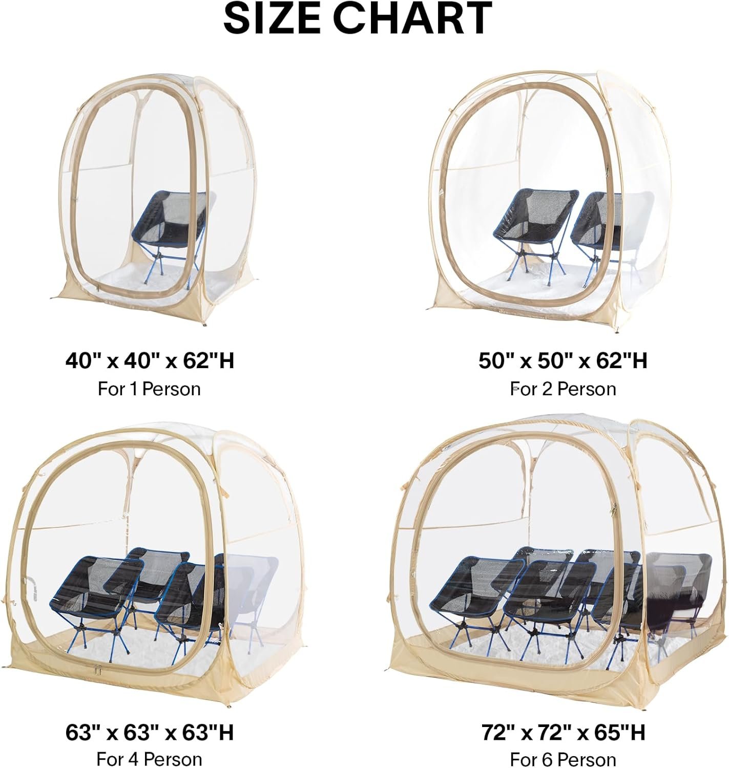 πππππππππ ππππ: Measuring in at Width (63β) x Length (63β) x Height (63β), and weighing only 11.8 lbs, your bubble tent will provide comfort for up to 4 person.