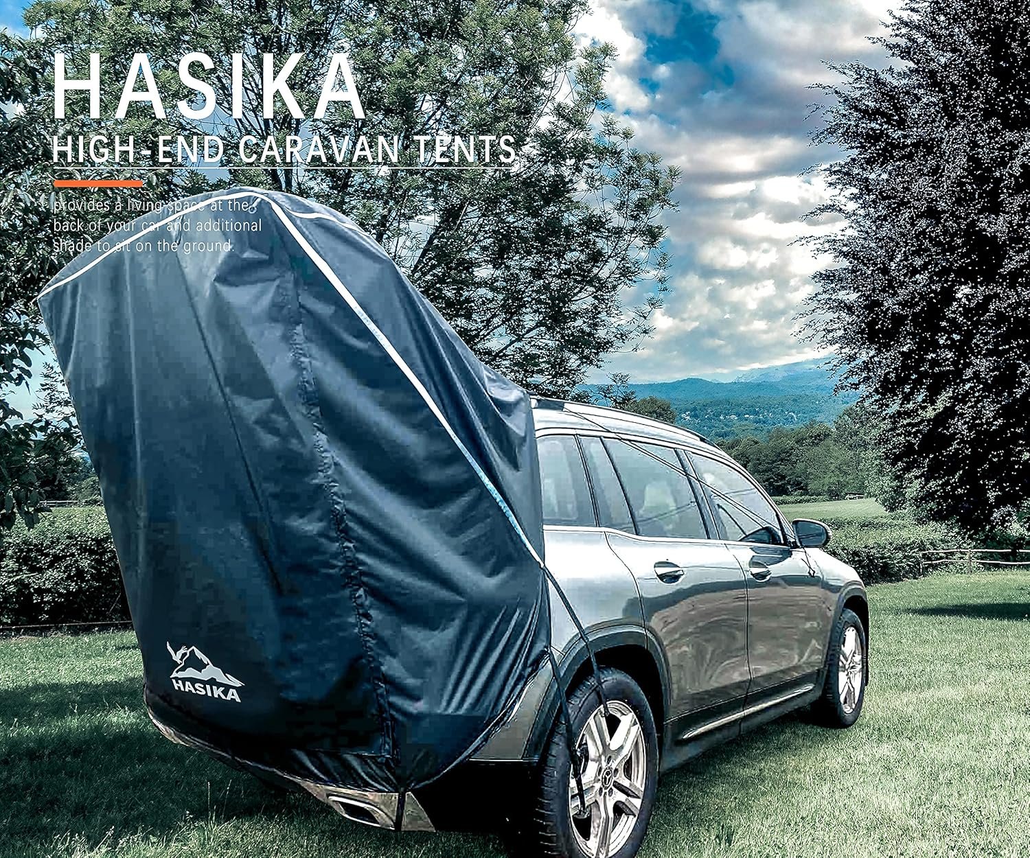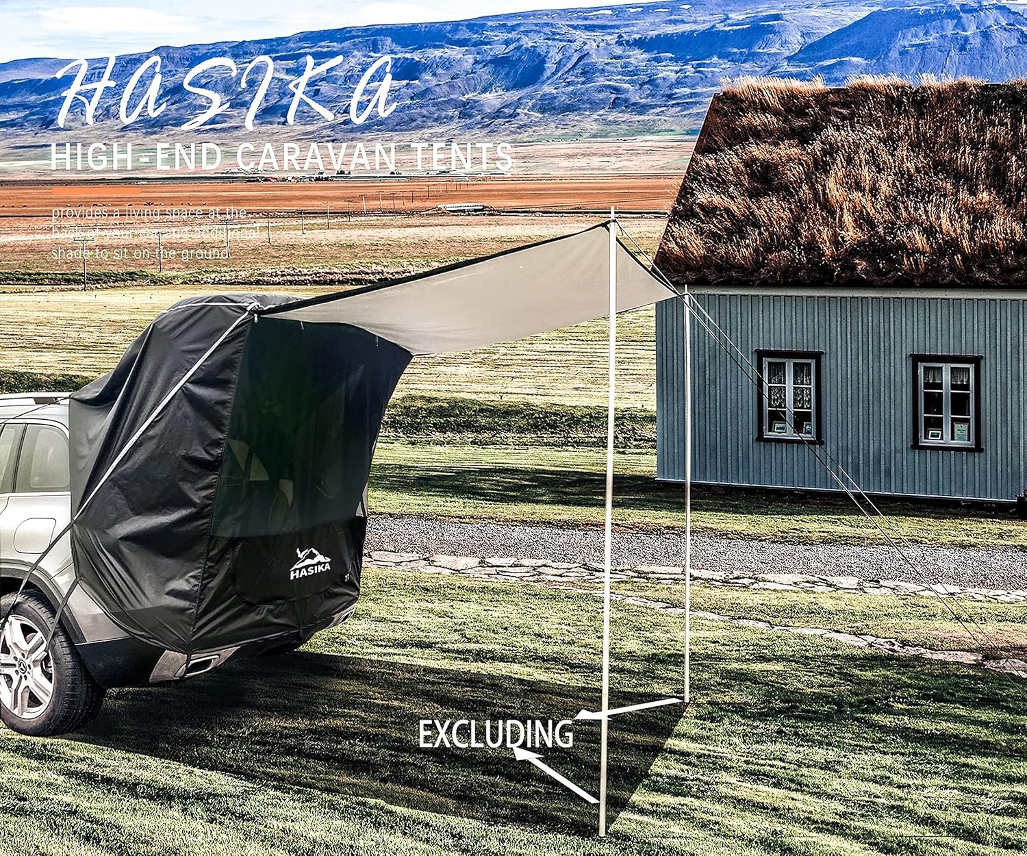 Hasika SUV Camping Tent Car Tailgate Shade Awning with Screen Net Waterproof 3000MM UPF 50+ Black (Small)