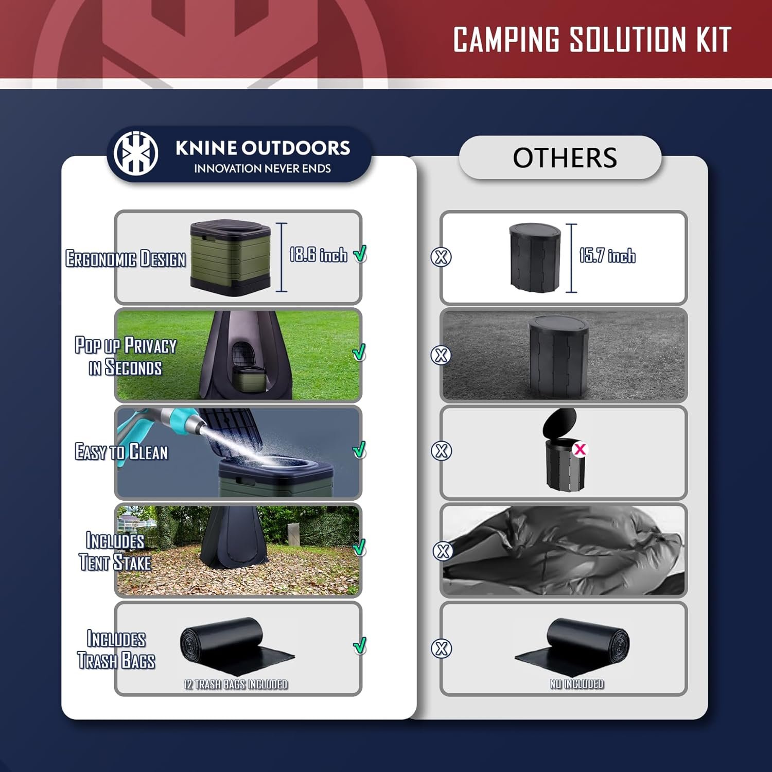 KNINE OUTDOORS Portable Camping Toilets for Adult, Outdoor Toilet for Camping, Privacy Tent with Carry Bags, Portable Potty, Washable and Foldable for RV Travel