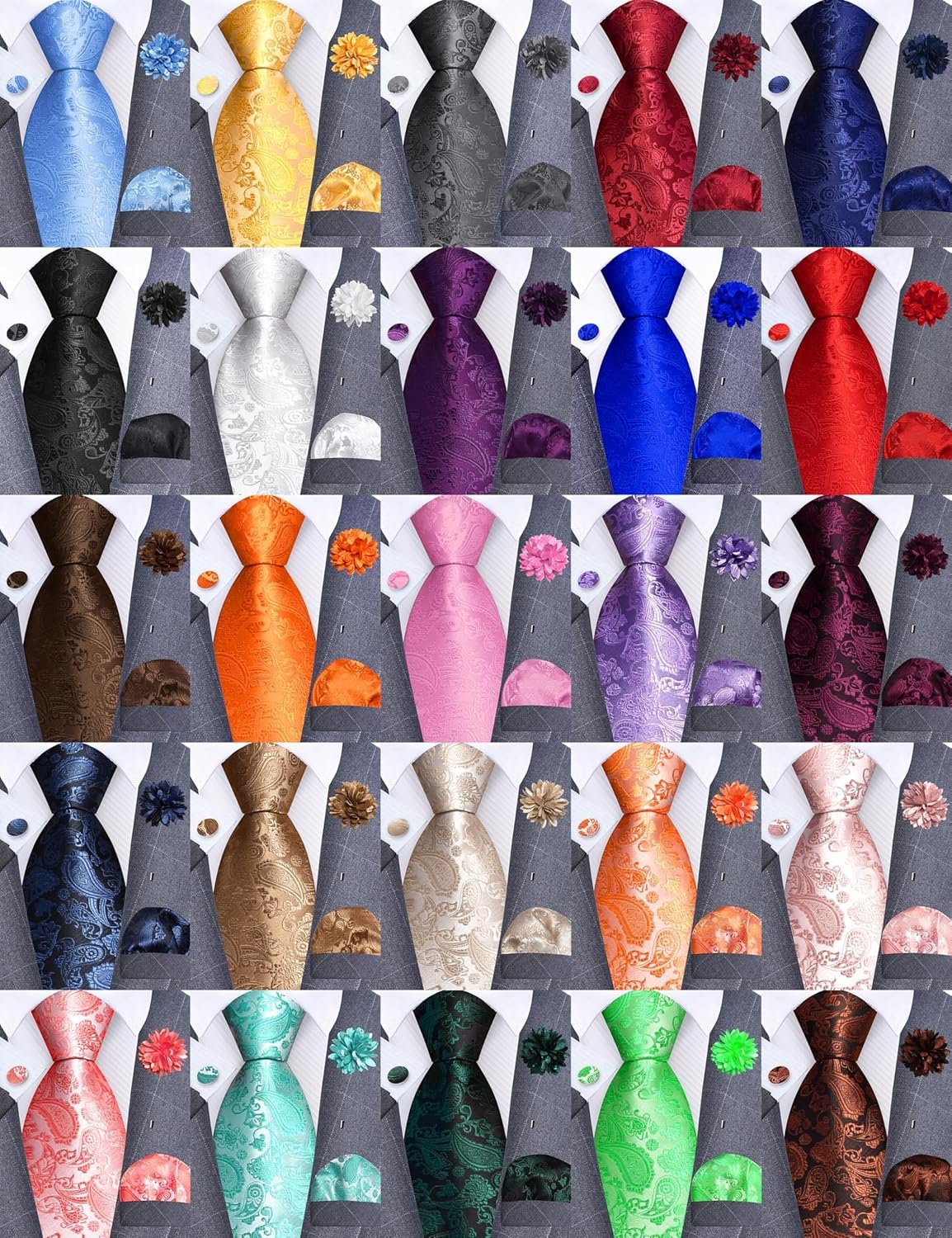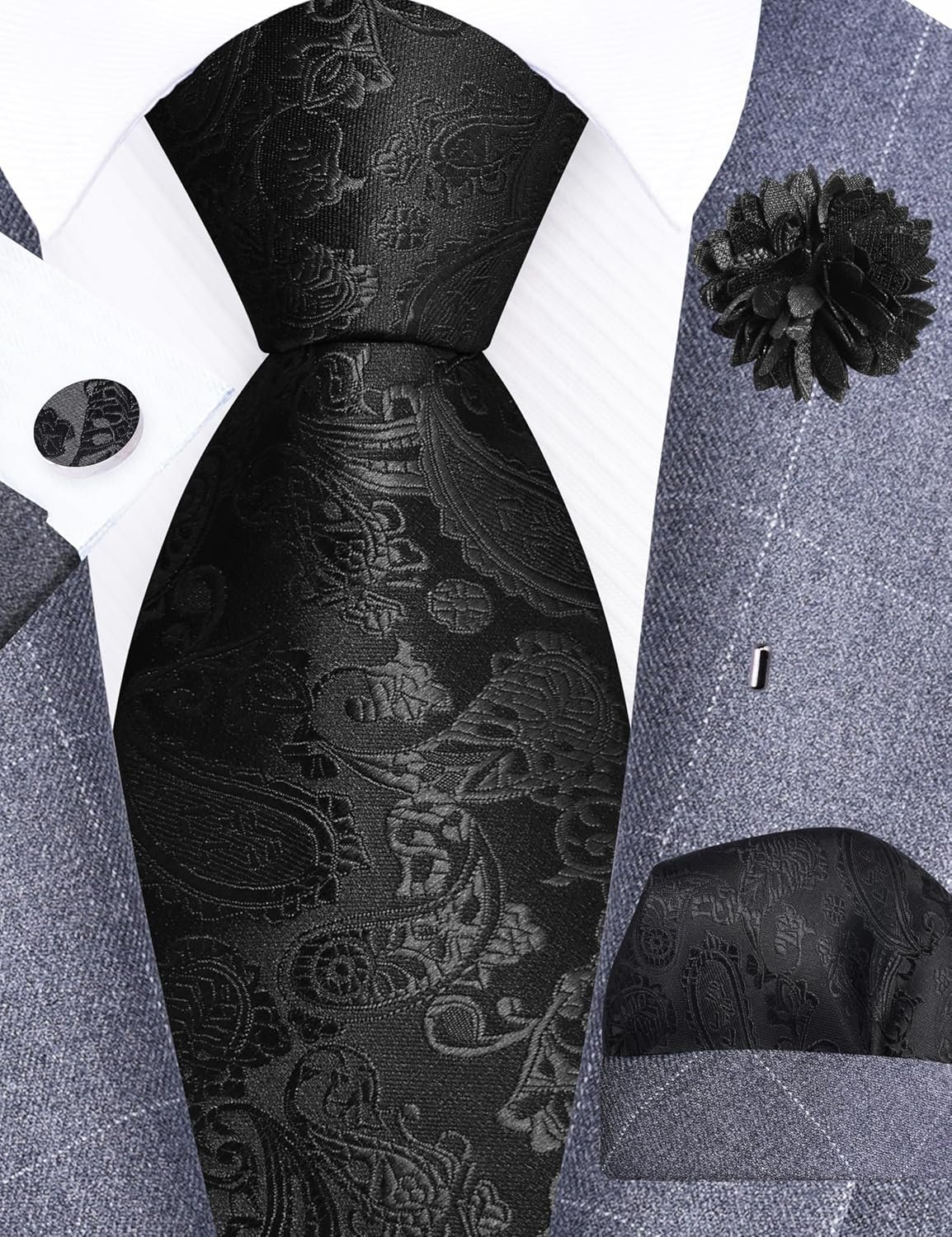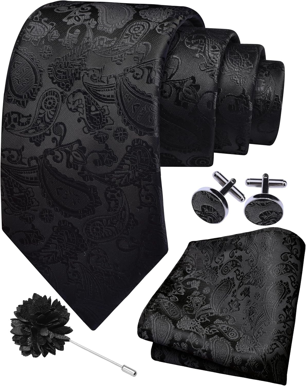 GUSLESON 3.15″(8cm) Mens Paisley Tie and Lapel Pin Necktie Hankerchief Cufflinks Set for Men