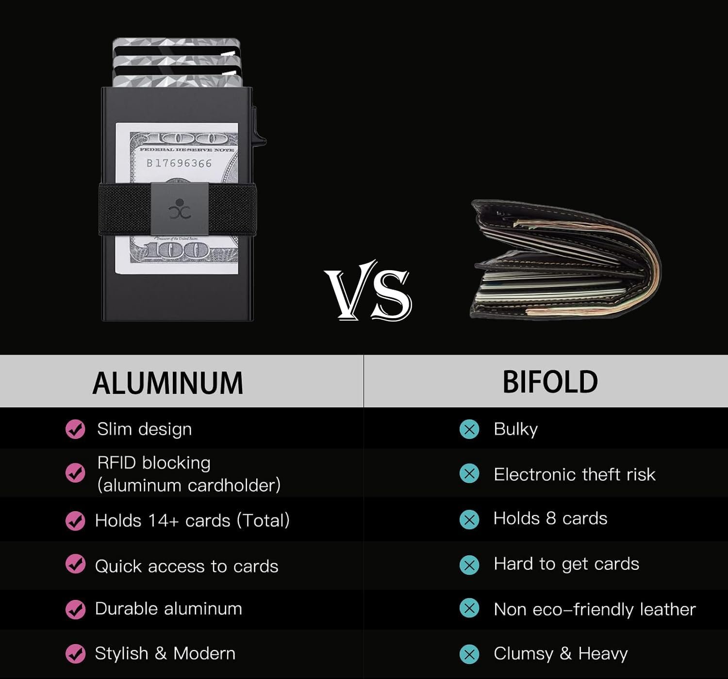 🔒 RFID & NFC BLOCKING: This smart wallet use advanced aluminium technology to protect your cards from unauthorized and contactless scanning. Stop thieves from cloning your bank cards and prevent data theft.