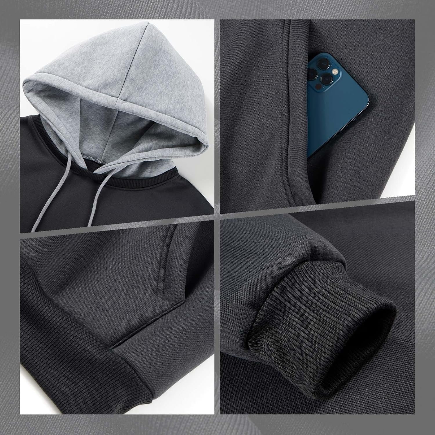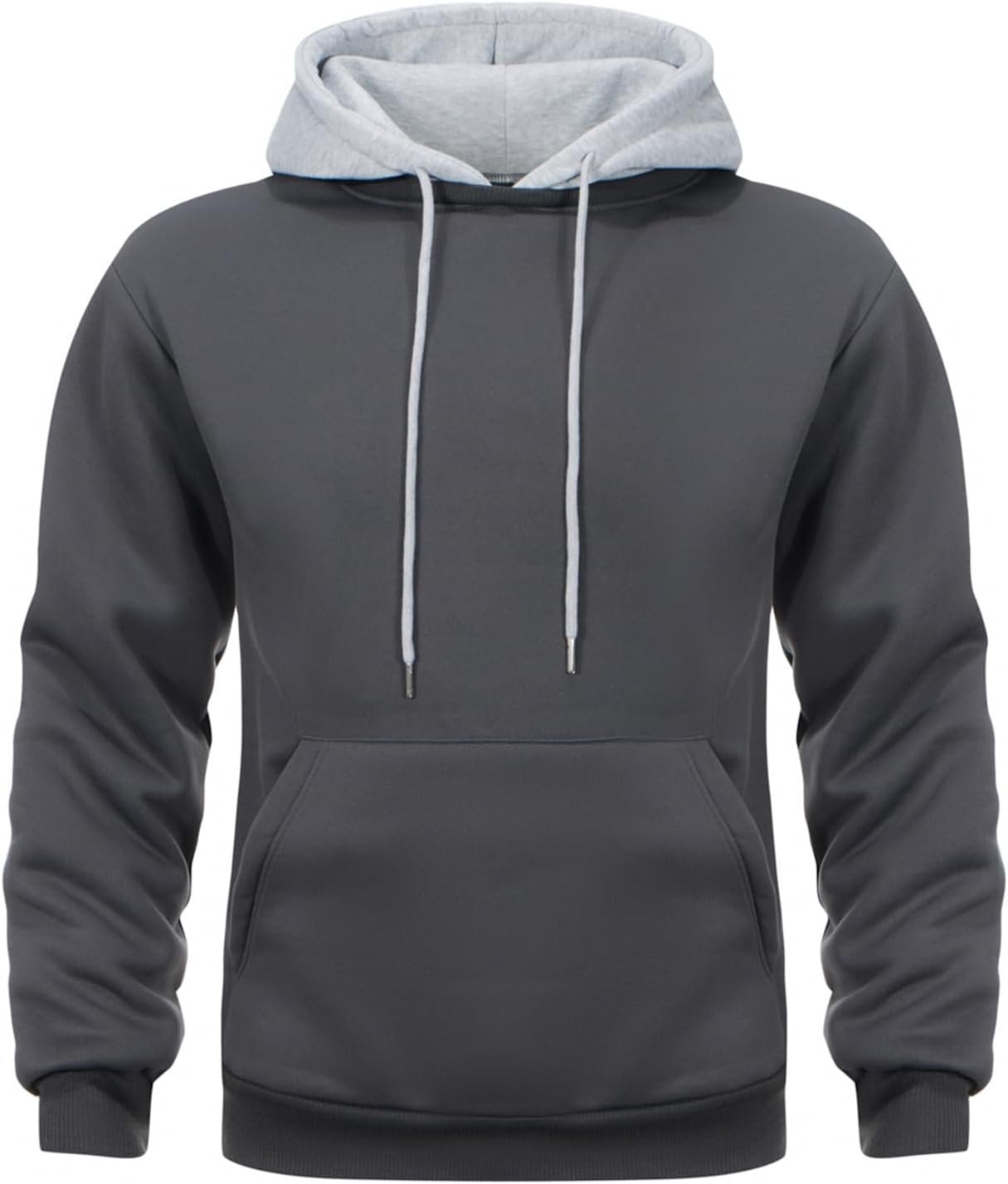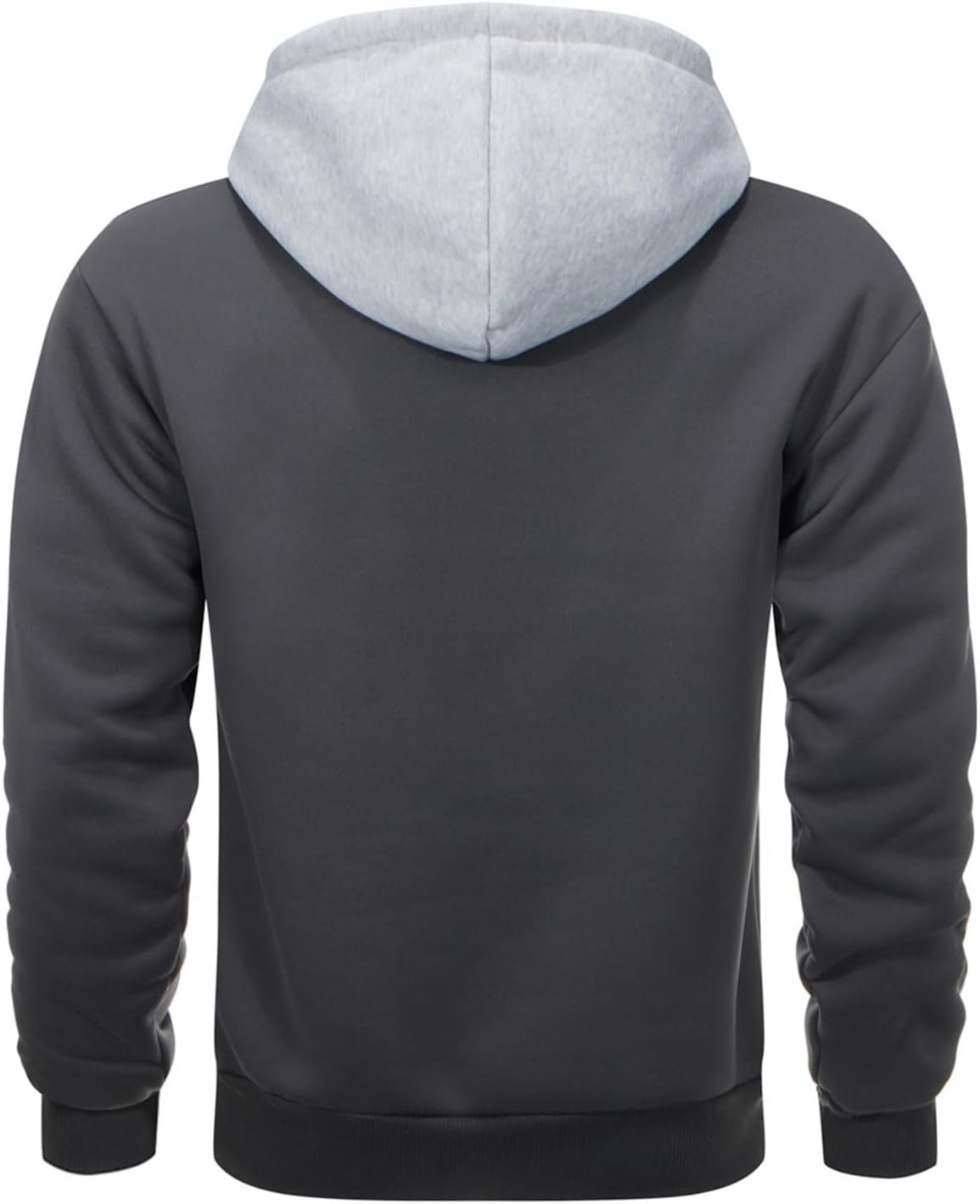 Mens Hoodies Pullover Color Block Fleece Long Sleeve Sweatshirt Tops with Pocket