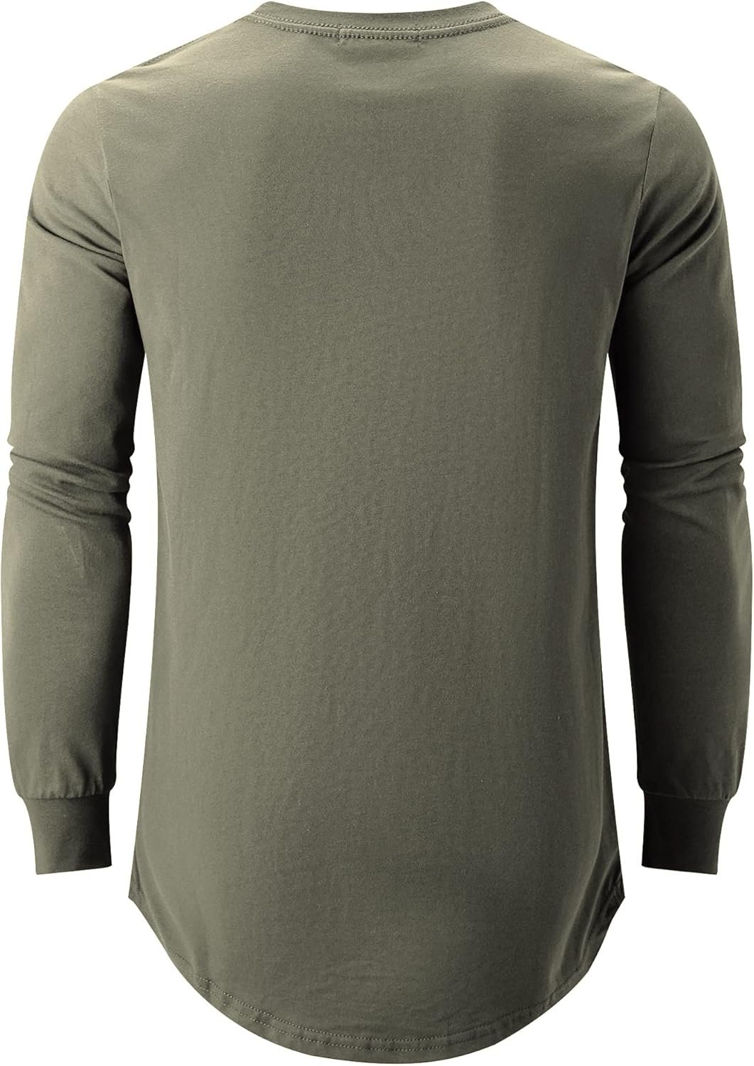 KLIEGOU Mens 100 Cotton Hipster Hip Hop Longline Crewneck T-Shirt Pre – Shrunk S-4XL