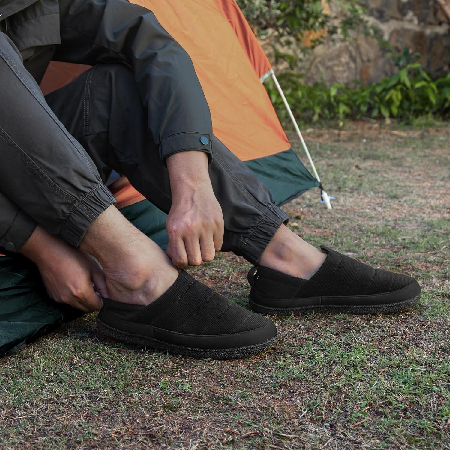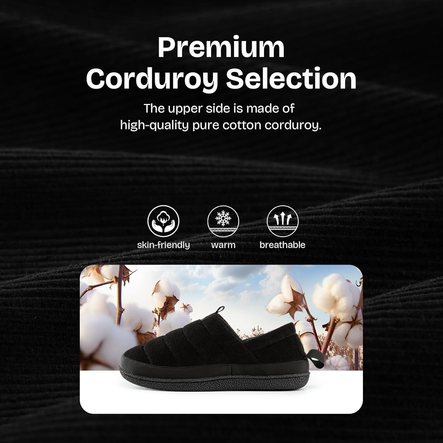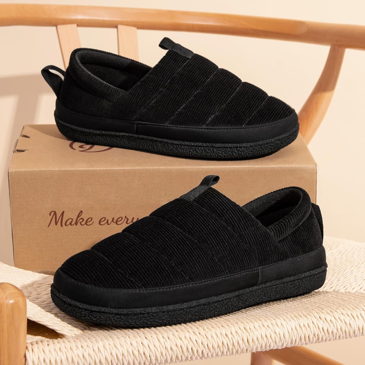 EverFoams Men’s Quilted Slippers Soft Comfy Corduroy Closed-back Indoor Outdoor Memory Foam House Shoes