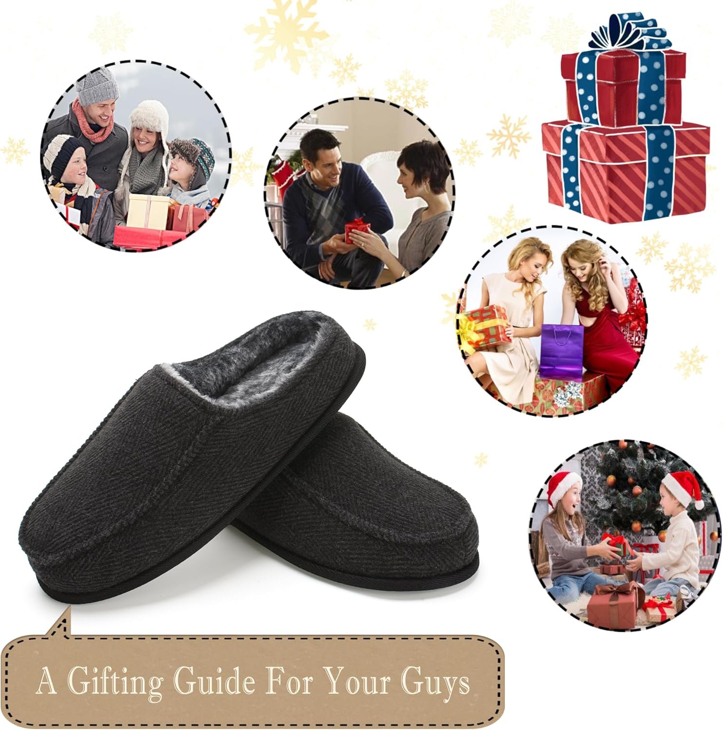 Men’s House Slippers, Cozy Non-slip Home Shoes, Warm Comfy Indoor Outdoor Moccasin Slip Ons, Unique Christmas Gifts