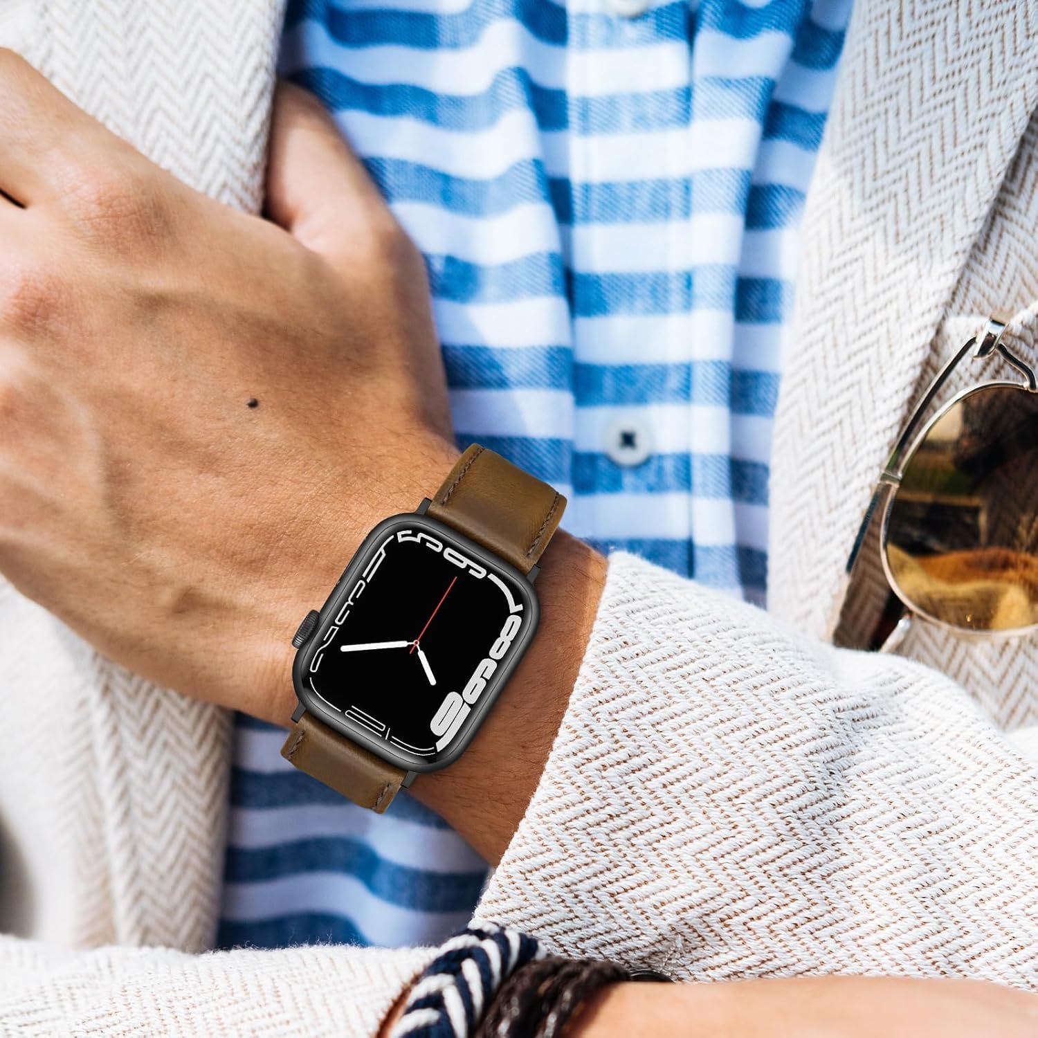 Package Included: A genuine leather strap compatible for Apple watch 42mm series 3/2/1 and iwatch 44mm series 6/5/4, iwatch 45mm series 8/ 7 . Iwatch 46mm series 10, Iwatch SE (NOT include any watch in parcel).