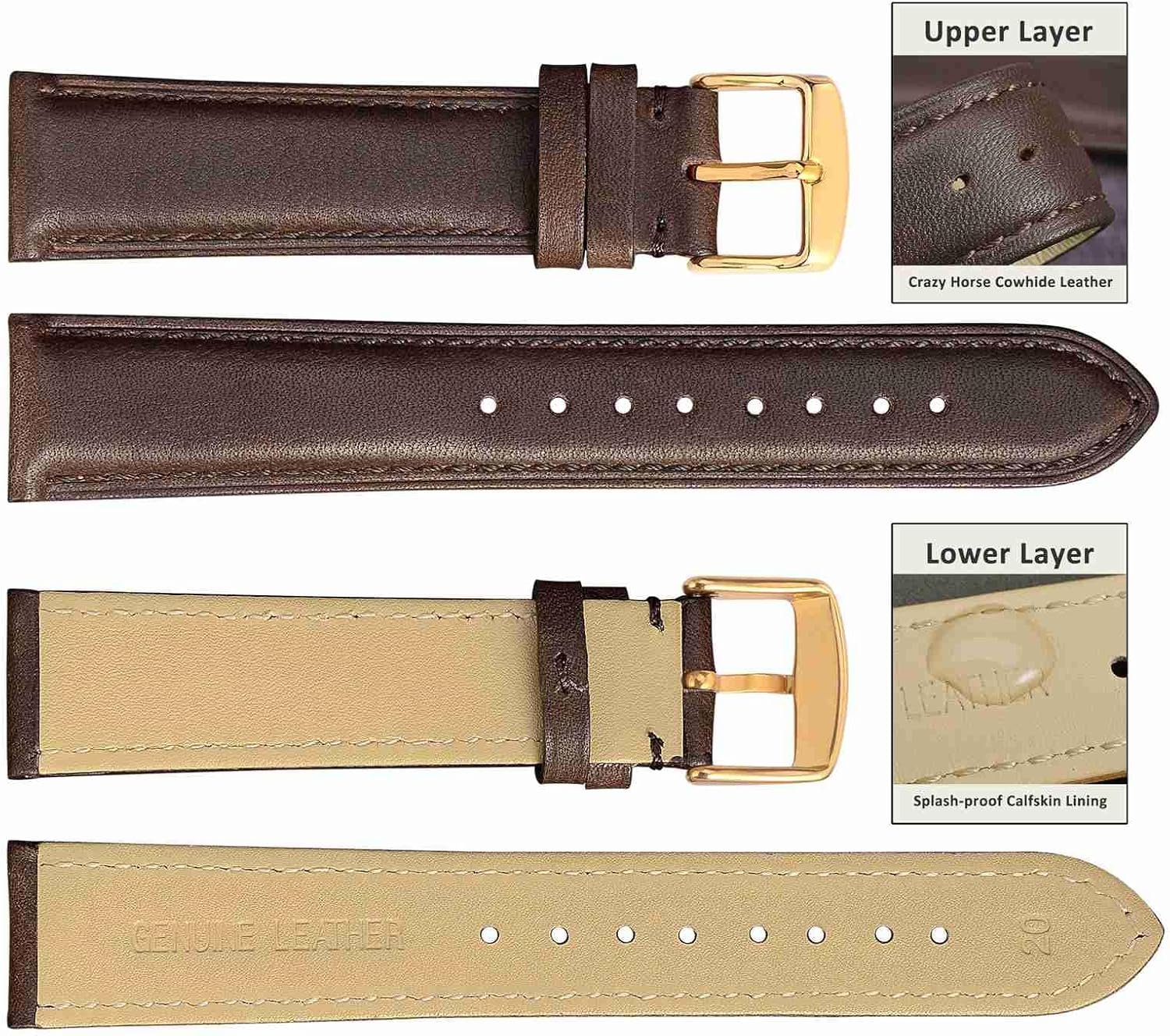 WATCH BAND MATERIAL: Made of good quality crazy-horse leather. Crazy horse leather is strong and durable which is popular for use in horse saddles. Its simple design and versatile color can make your watch stand out effortlessly.