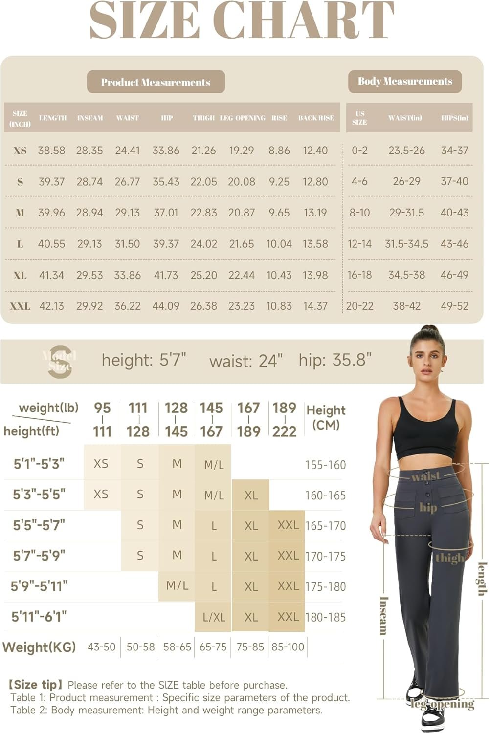 keriffe Women’s Straight Leg Pants High Waisted Button Stretchy Business Work Casual Trousers Multiple Pockets
