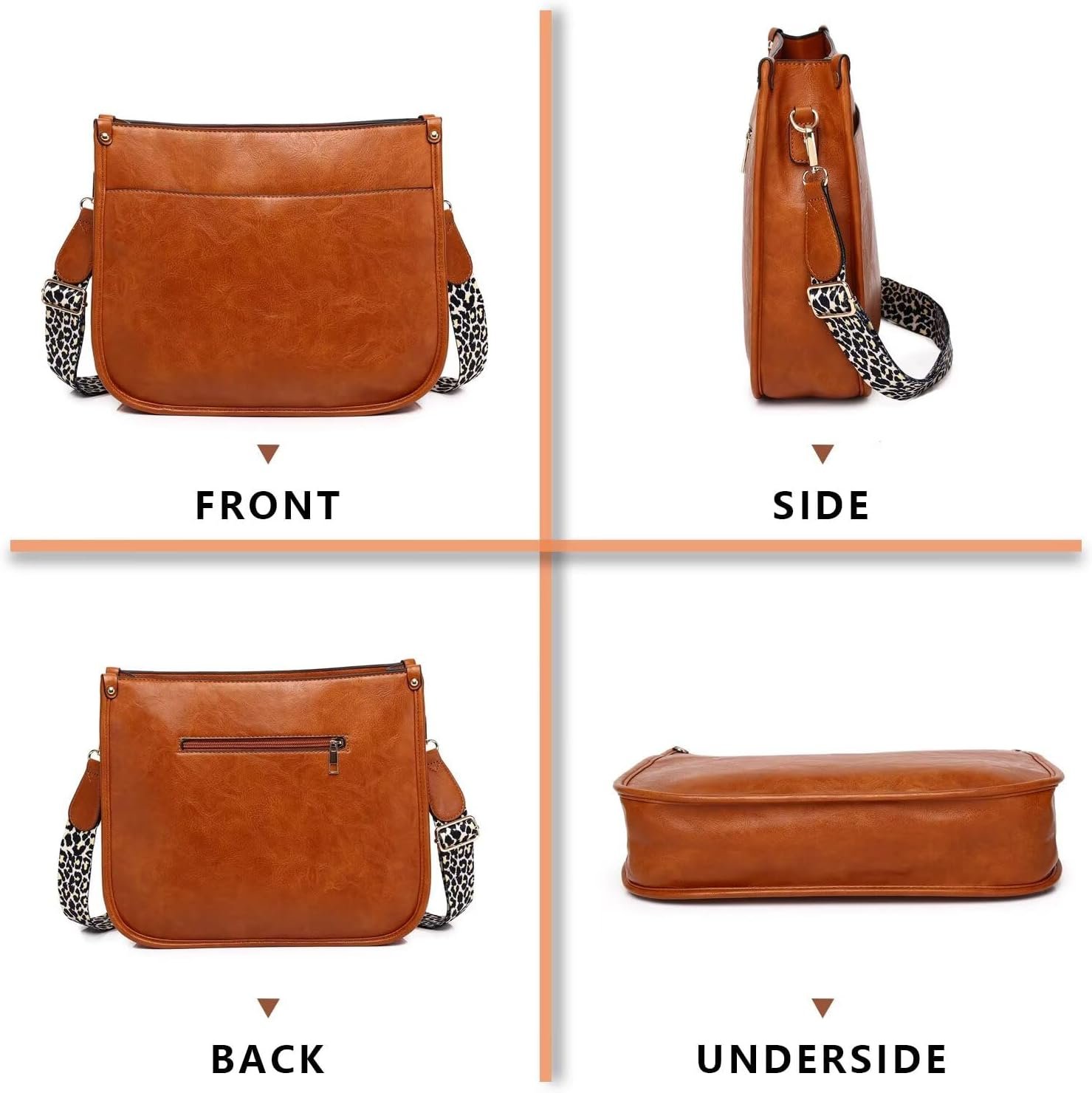 AUYOCO Vegan Leather Crossbody Bags for Women, Crossbody Purse with Guitar Strap Zipped Pockets Handbag Shoulder Bag