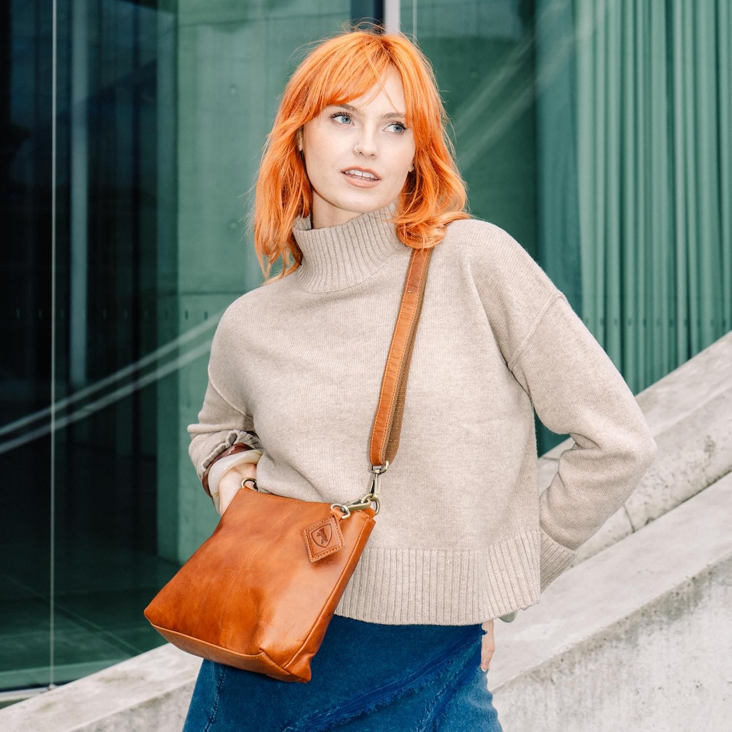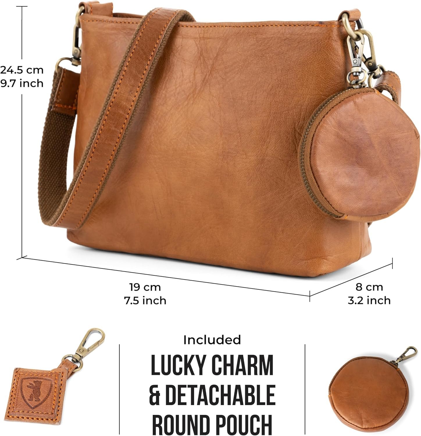 BERLINER BAGS Vintage Leather Shoulder Bag Marbella Crossbody Handbag for Women – Brown