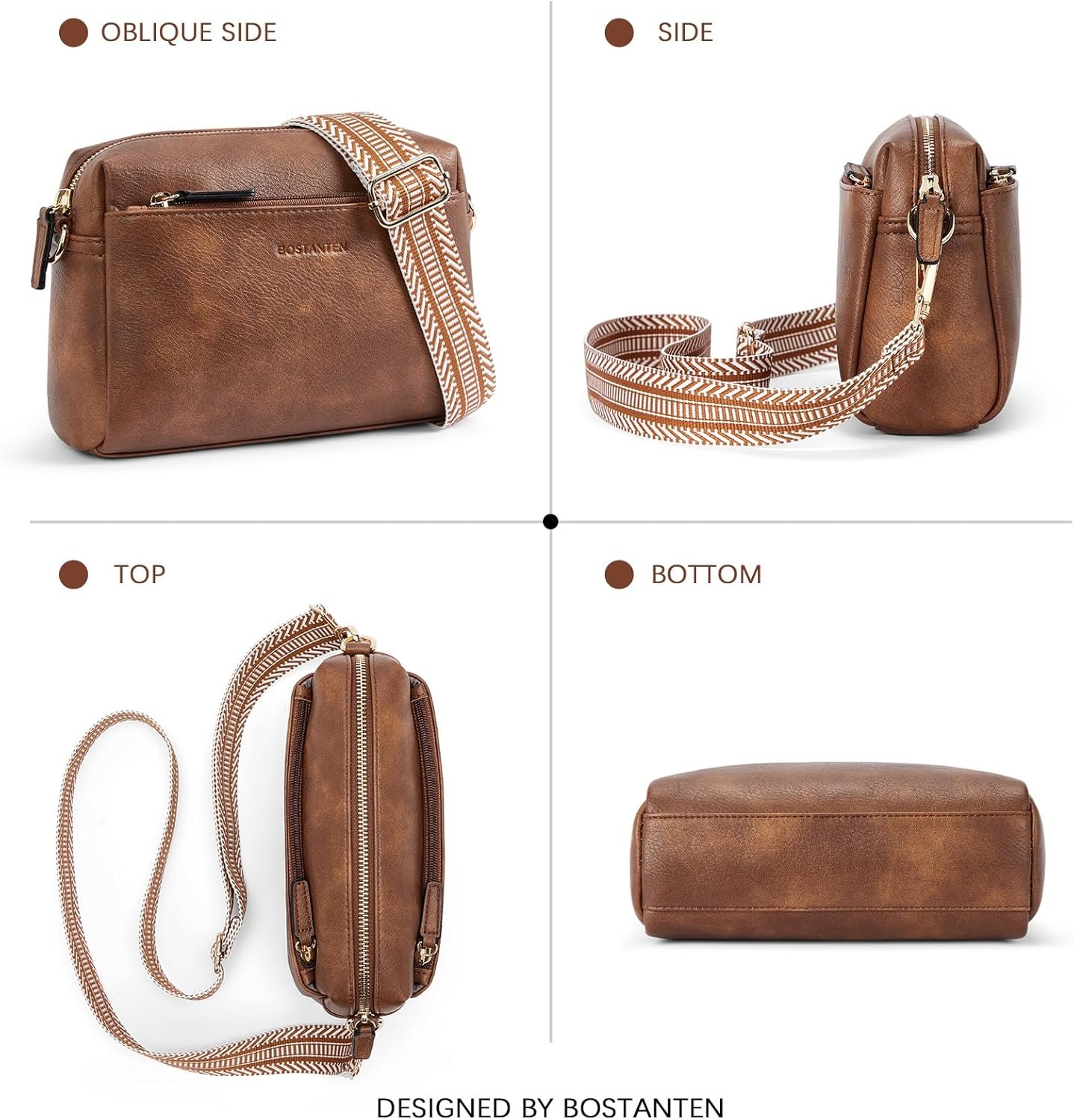 Be the first to review “BOSTANTEN Small Crossbody Purse for Women Triple Zip Cell Phone Leather Handbag with Colored Shoulder Strap”