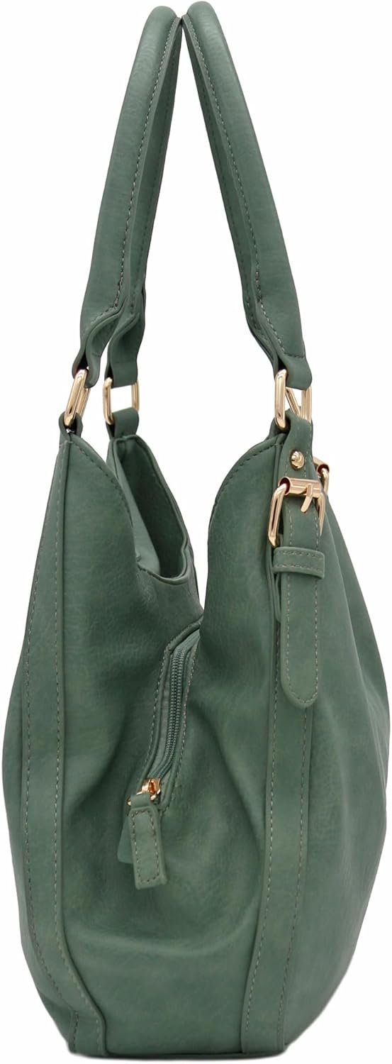 Be the first to review “Lightweight 3 Compartment Faux Leather Medium Hobo Bag”