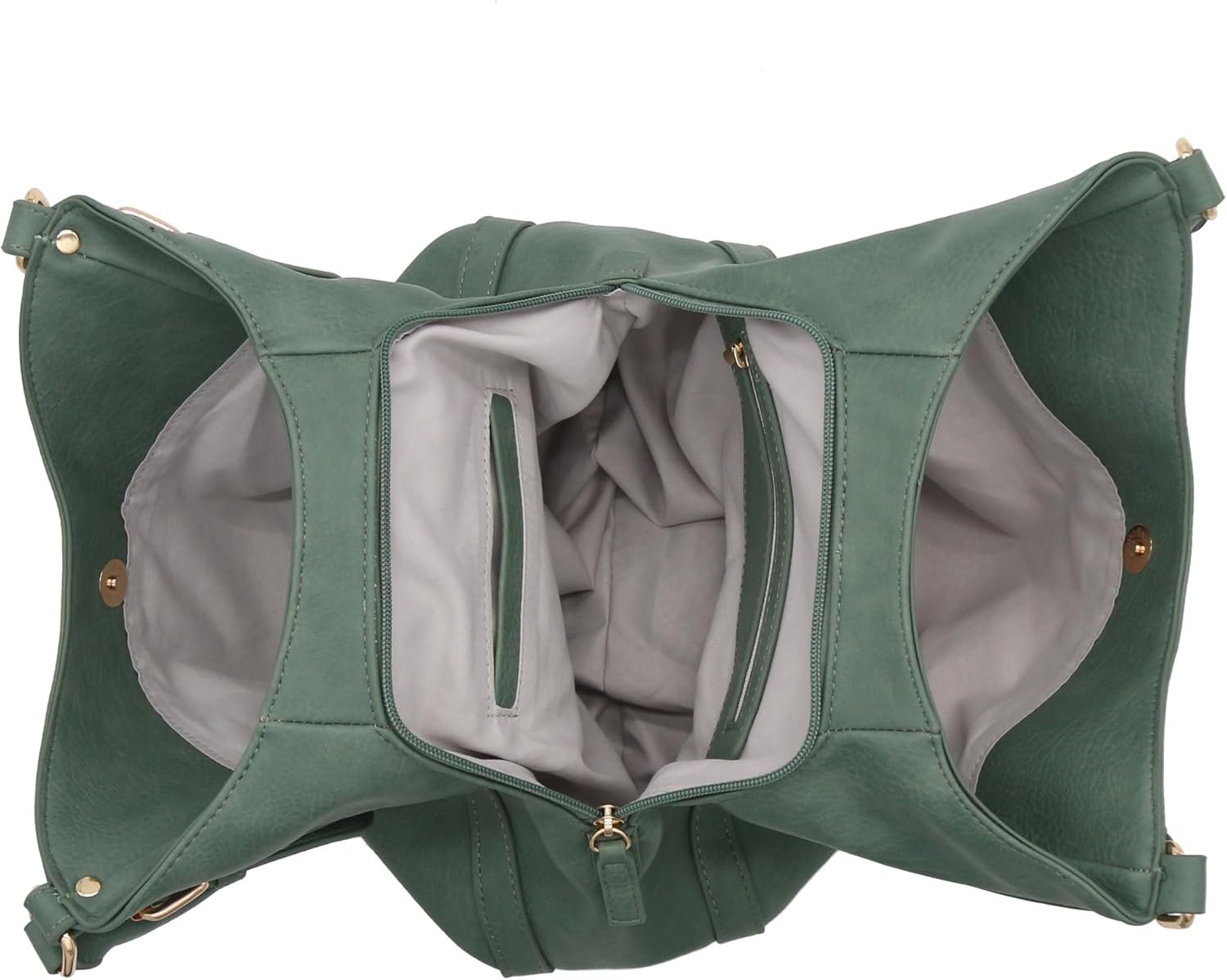 Lightweight 3 Compartment Faux Leather Medium Hobo Bag