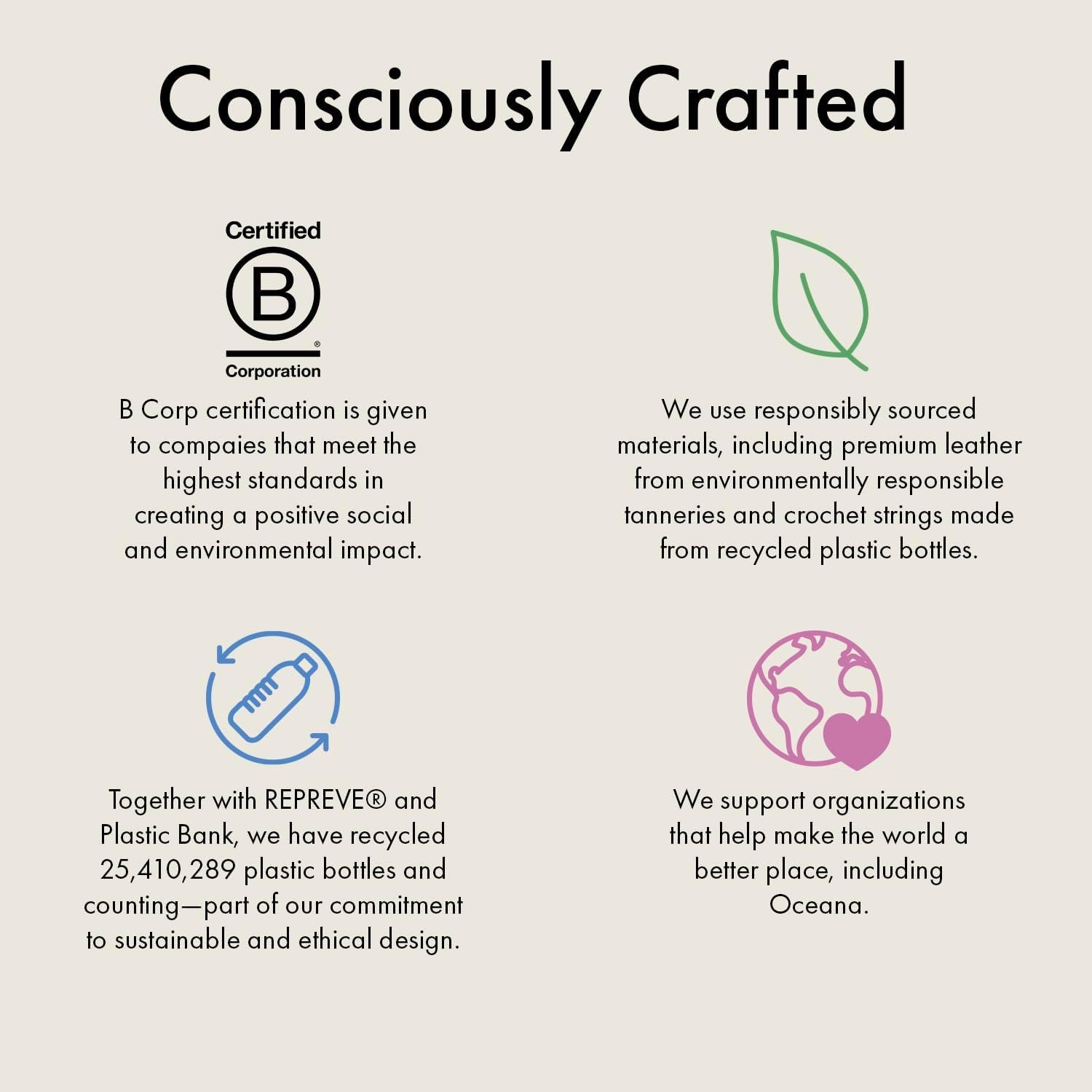 Our leather is soft and supple, from Leather Working Group’s tanneries dedicated to pushing for conscious practices.