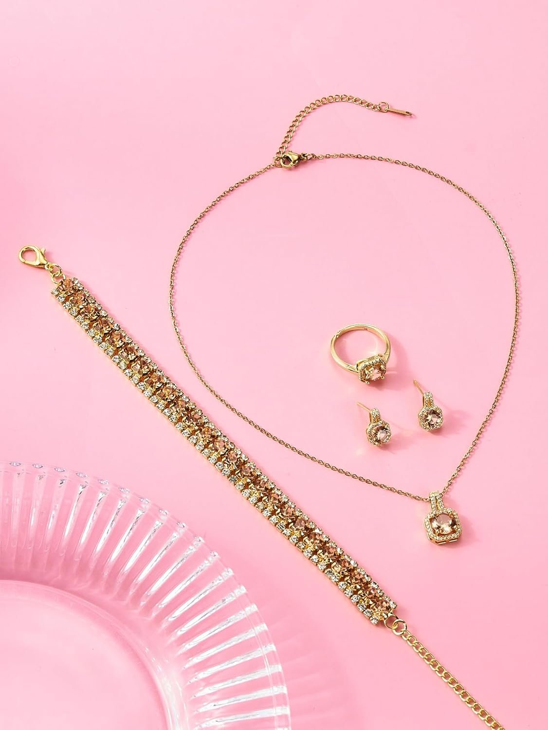 Be the first to review “4pcs Cubic Zirconia Wedding Jewelry Sets for Bride Bridesmaid Cubic Zirconia Pendant Necklace Earrings Link Tennis Bracelet Open Ring Set for Women”