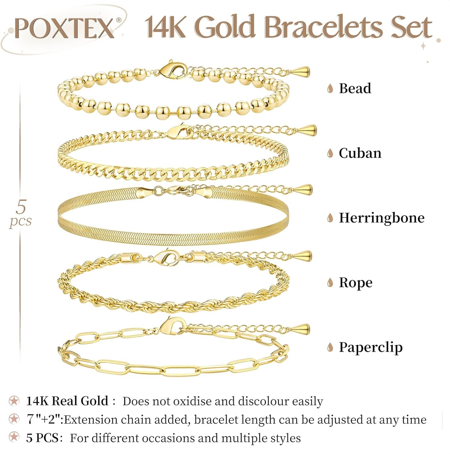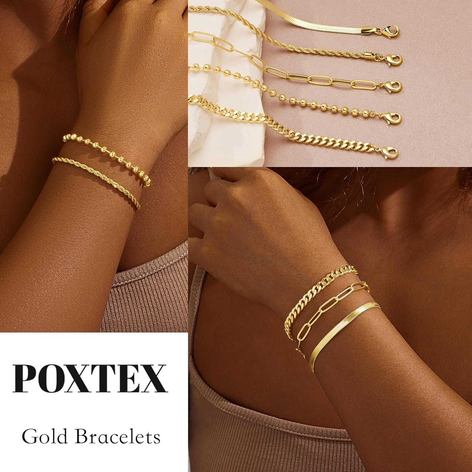 Gold Bracelets for Women,Dainty Bracelets Set for Women Trendy, Gold Bracelets Stack With Beaded, Cuban, Paperclip, Heart, Snake, Rope, Pearl, Cross, Hand Chain, Silver Jewelry Gifts for Women Christmas