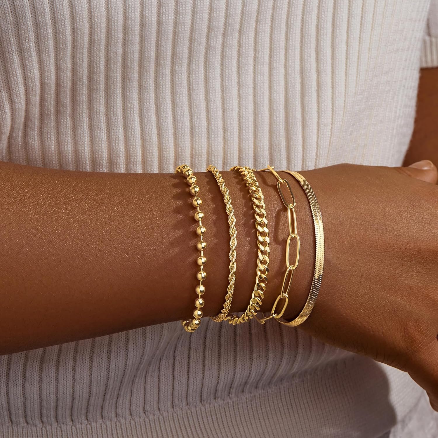 Gold Bracelets for Women,Dainty Bracelets Set for Women Trendy, Gold Bracelets Stack With Beaded, Cuban, Paperclip, Heart, Snake, Rope, Pearl, Cross, Hand Chain, Silver Jewelry Gifts for Women Mom
