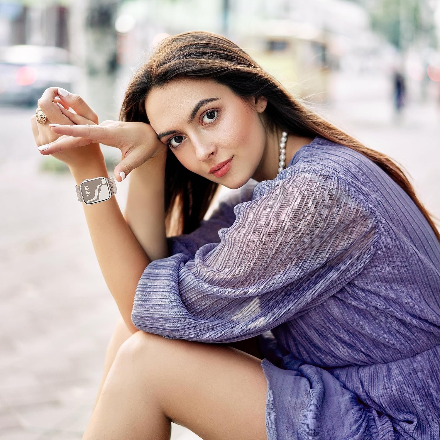 Compatible Models — Fit for Apple watch 38mm 40mm 41mm 42mm 44mm 45mm 46mm 49mm, iWatch Series 10/9/8/7/6/5/4/3/2/1/Ultra/Ultra2/SE. Dress up your watch with this elastic apple watch band. Great for working out and daily wear.