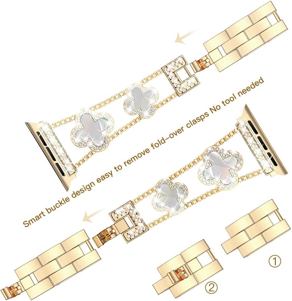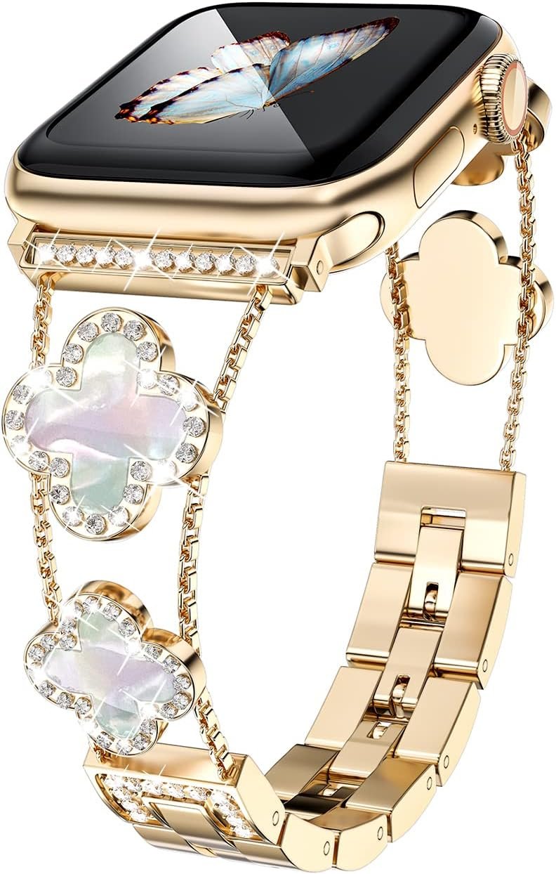 Diamond Metal Bands Add Sparkle to Your Watch For Apple Watch Series 10/9/8/7/6/5/4/3/2/1SE/Ultra Clover Simple and Stylish Compatible with 38mm40mm41mm42mm44mm45mm 46mm49mm Women’s Wear