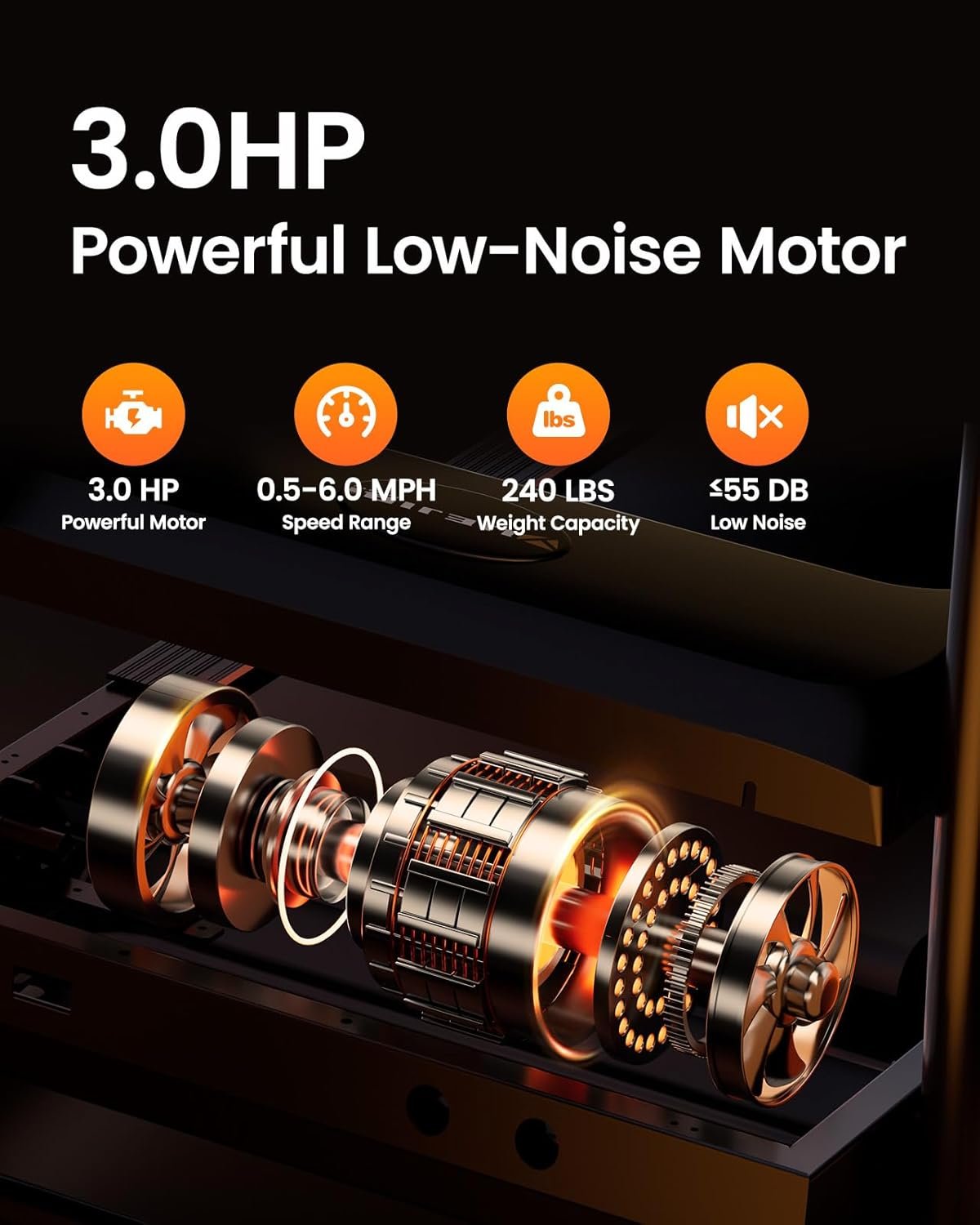 COMFORTABLE RUNNING EXPERIENCE: This treadmill is equipped with powerful 3.0 HP low-noise motor. It not just holds 240 LBS capacity, but also revolves up to 6.0 MPH, suitable for most people. The running belt 39.4” x 15” of the treadmill for home is made of 5-layer non-slip textured material, extremely flexible and comfortable. 4 silicone and 6 built-in shock absorbers of the foldable treadmill form the scientific shock absorper system so as to provide maximum protection to joints and ankles