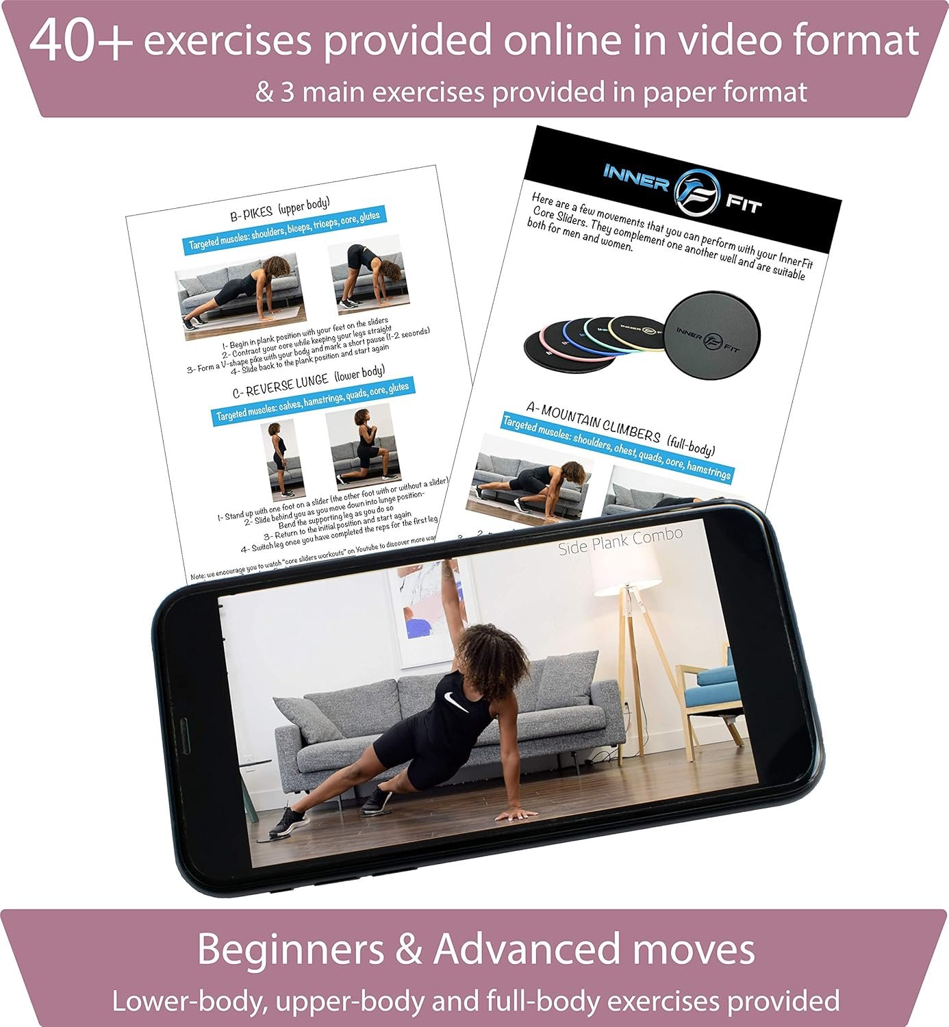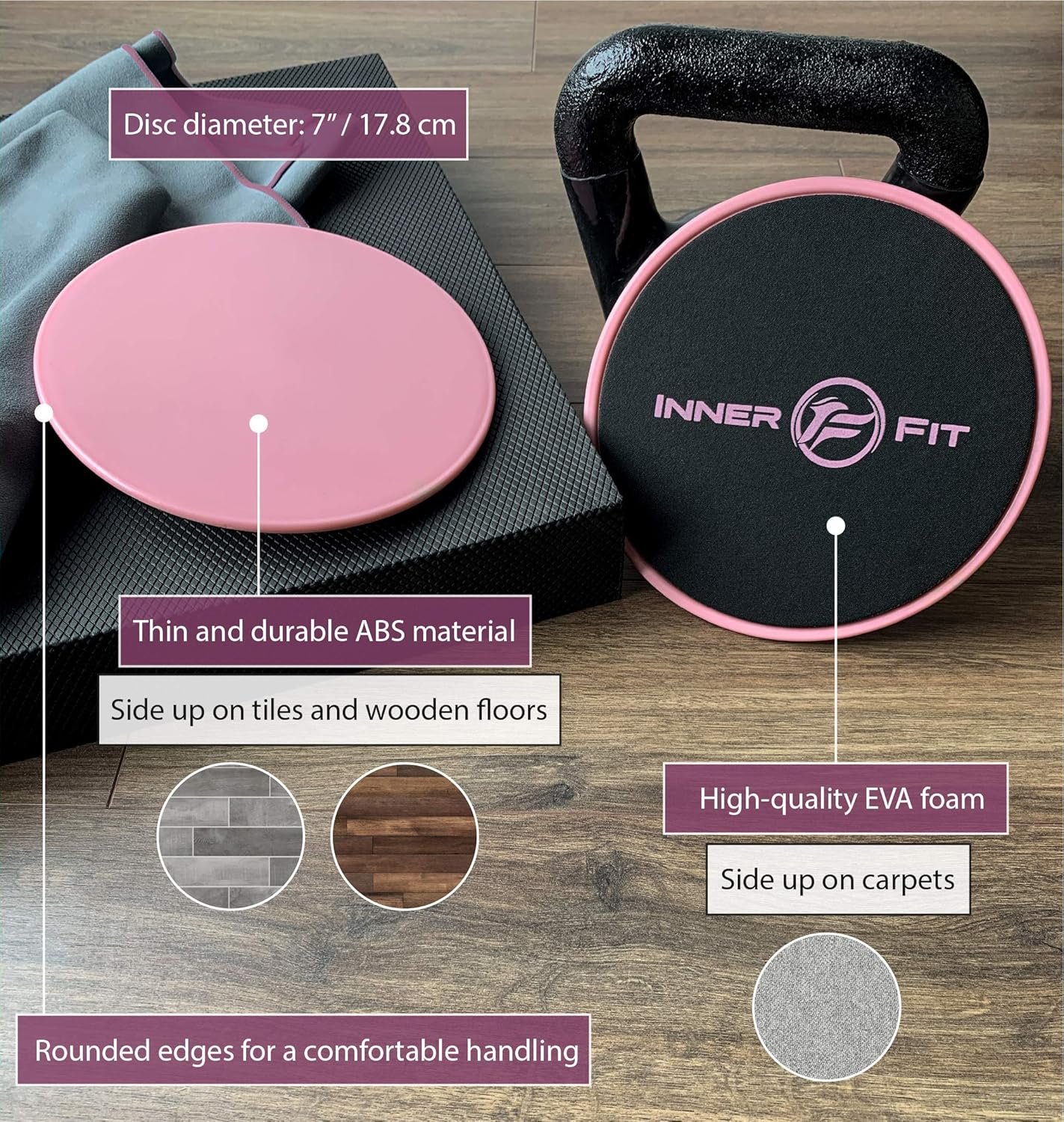 InnerFit Core Sliders for Working Out – Set of 2 Dual Sided Exercise Sliders Fitness Discs – Durable Strength Slides Suitable for Carpets and Hardwood Floors