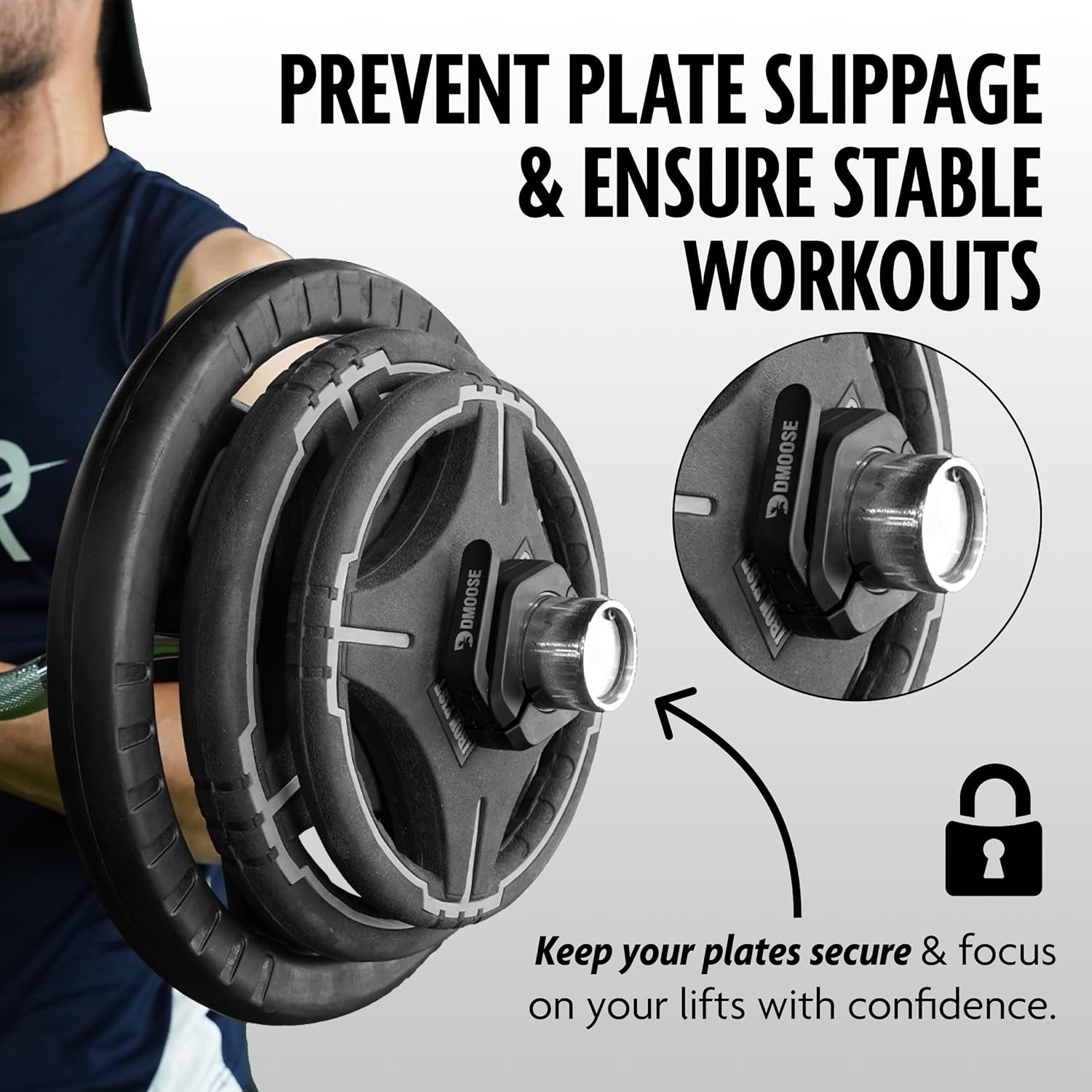 𝐏𝐑𝐄𝐕𝐄𝐍𝐓 𝐏𝐋𝐀𝐓𝐄 𝐒𝐋𝐈𝐏𝐏𝐀𝐆𝐄 𝐅𝐎𝐑 𝐒𝐓𝐀𝐁𝐋𝐄 𝐖𝐎𝐑𝐊𝐎𝐔𝐓𝐒: Ensure your plates stay securely in place during every lift with DMoose Weight Bar Clamps. Designed for serious weightlifters, these magnetic bar clips provide unmatched stability, allowing you to focus on perfecting your form and maximizing your performance. No more worrying about shifting weights; lift with confidence and achieve your fitness goals with unparalleled stability and support.