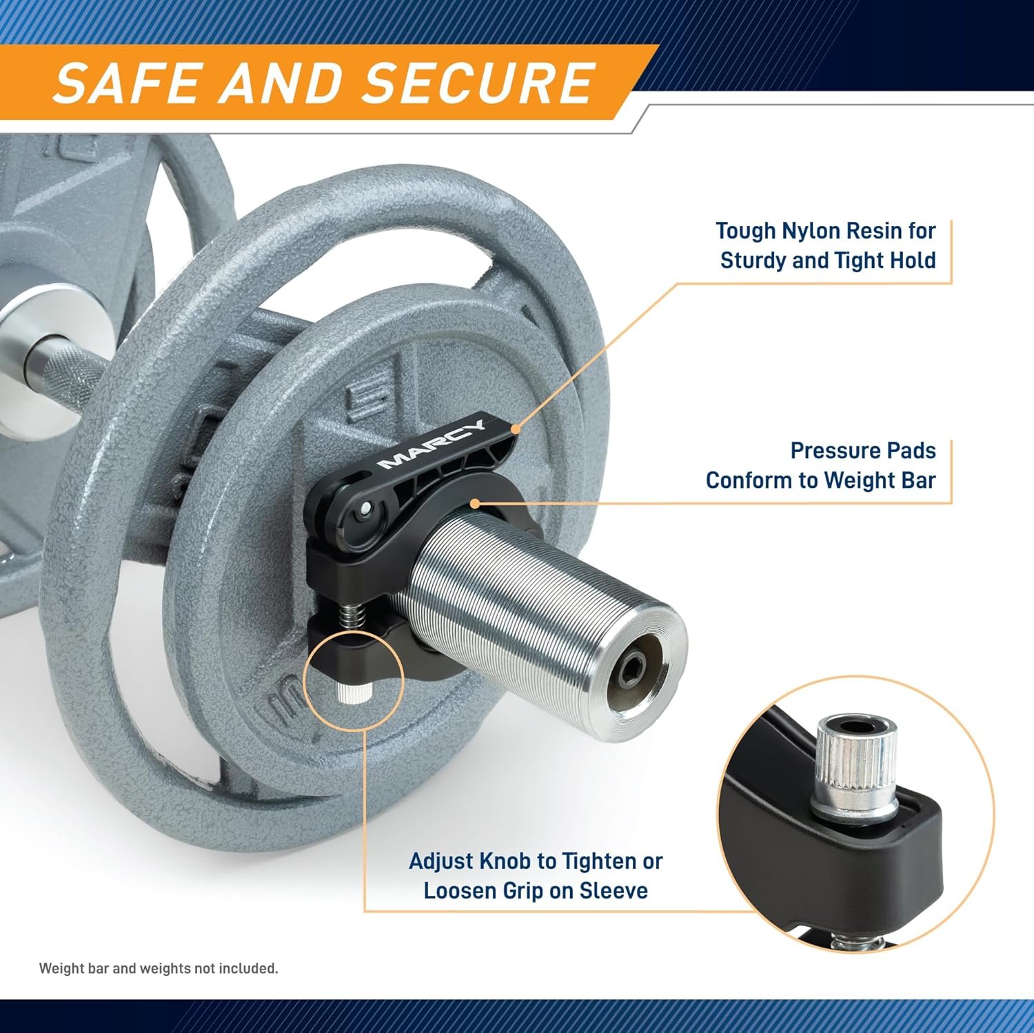 Secure Your Weights: The Marcy Olympic Barbell Lock Collar Clips provide a tight grip, preventing weights from sliding off during intense workouts.