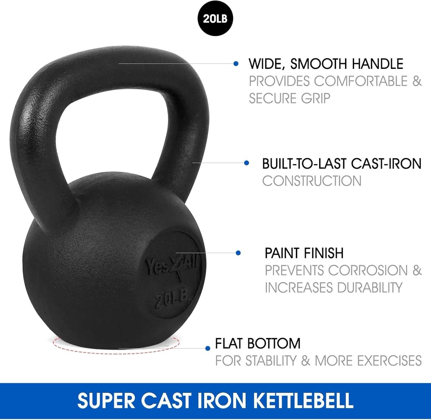 Yes4All 5-80 lbs Cast Iron Kettlebell for Dumbbell Weights Exercises, Gym, Full Body Home Workout Equipment, Push up, Grip and Strength Training