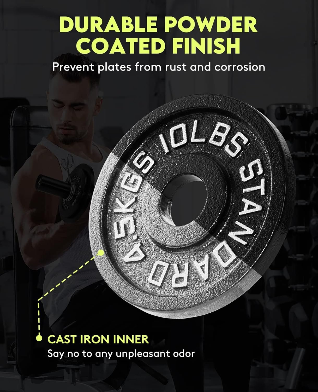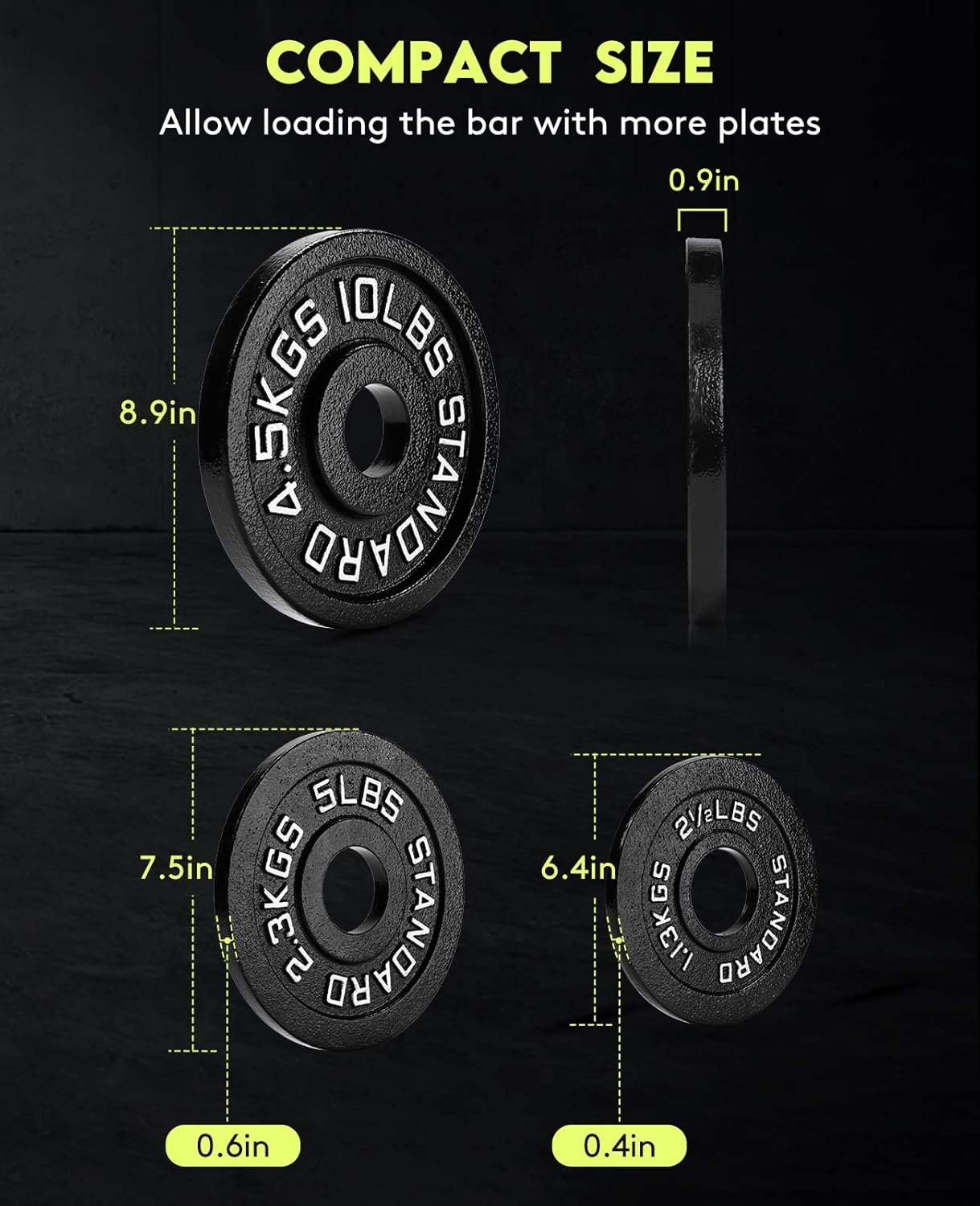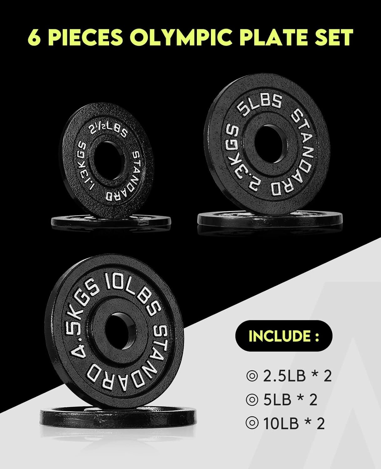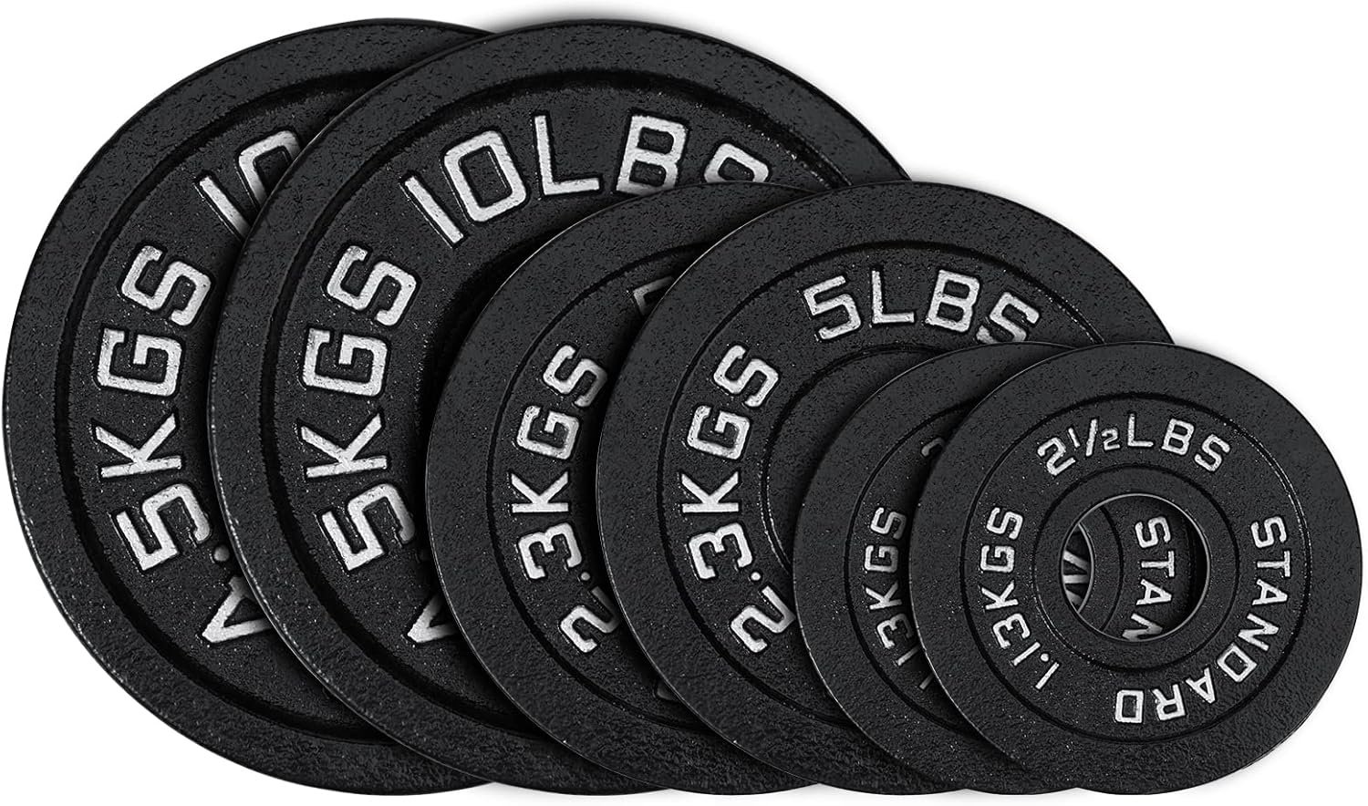 Premium construction: All plates feature a sturdy, black powder coated finish to prevent the plates from rust and corrosion. these plates are labeled in both LB and KG for easy recognition, which enables you to focus more on your fitness program