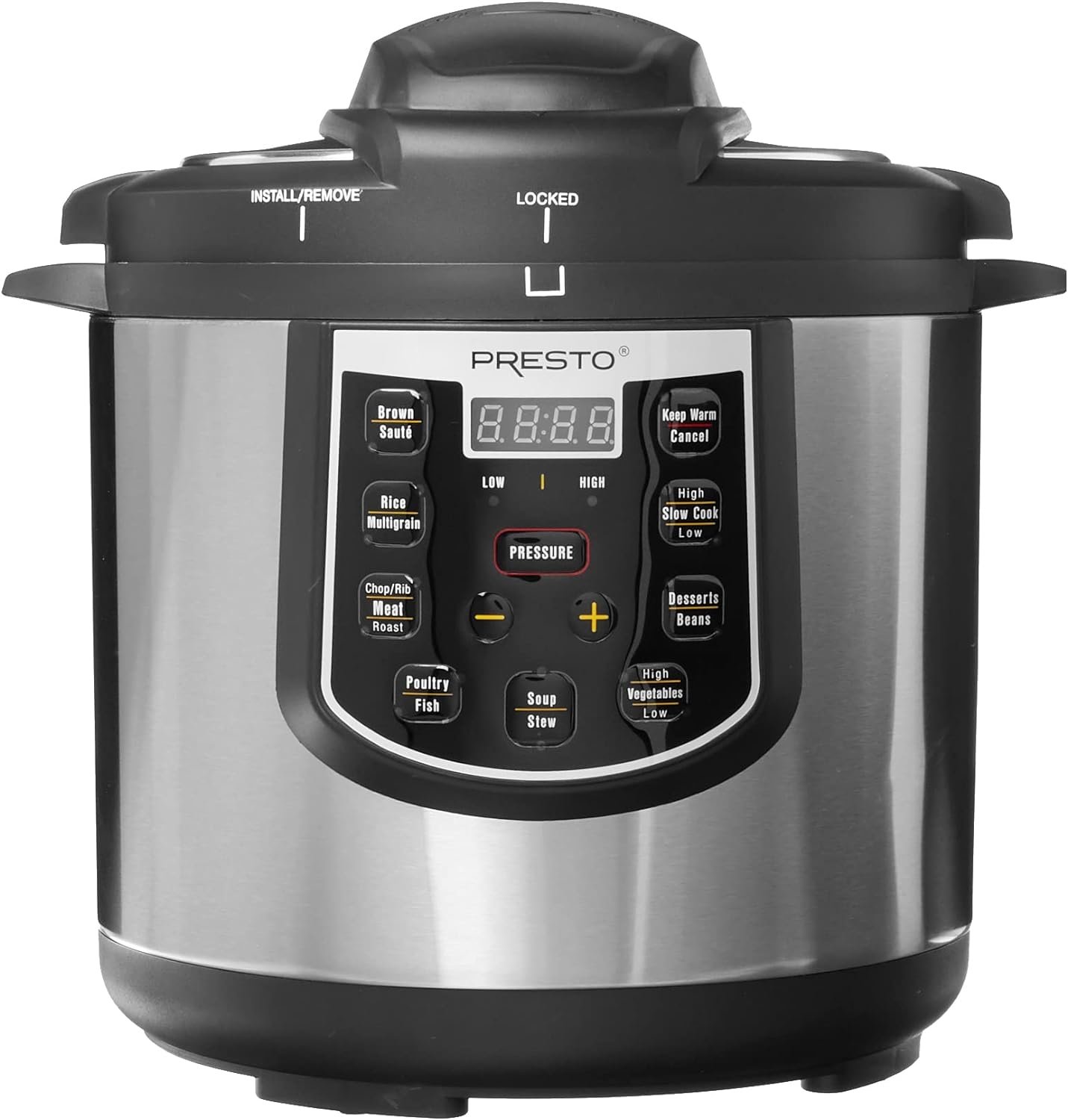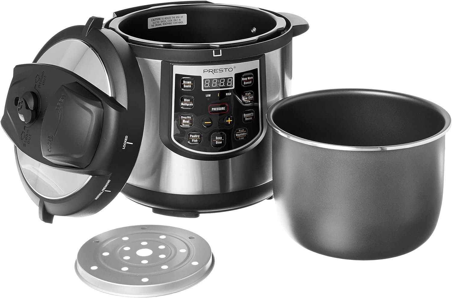 Presto 02141 6-Quart Electric Pressure Cooker, Black, Silver, Stainless steel