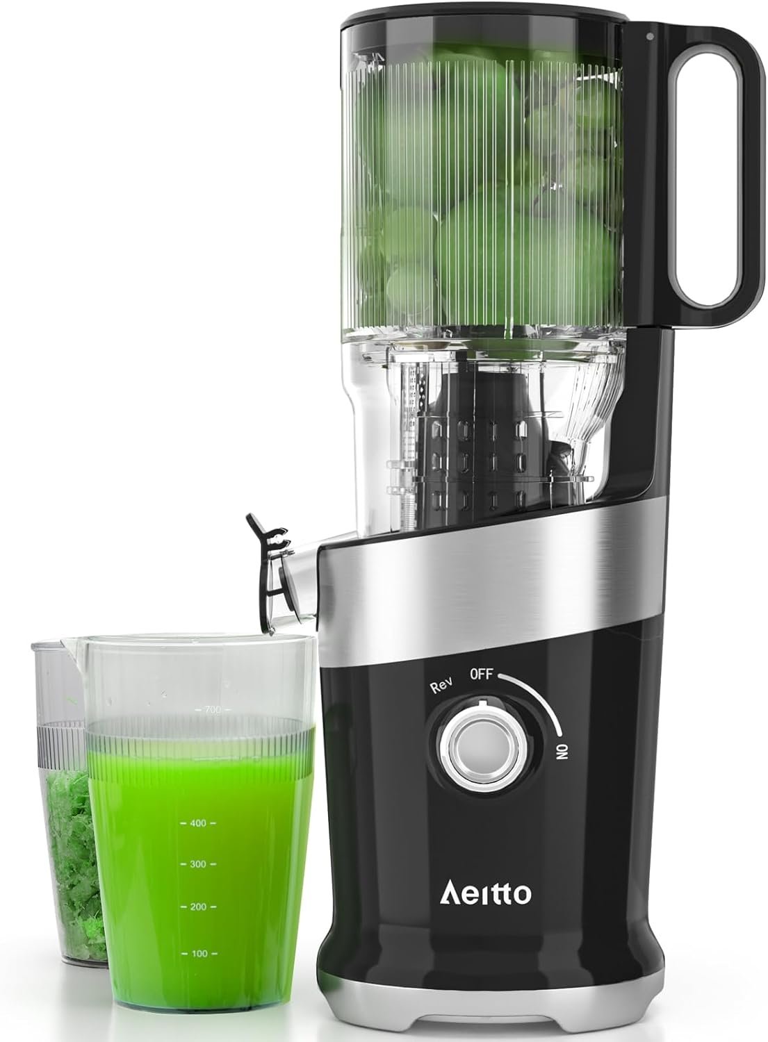 Aeitto Cold Press Juicer,4.9″ Wide Mouth Fits for Whole Fruits and Vegetables, Slow Masticating Juicer Easy to Clean, High Juice Yield