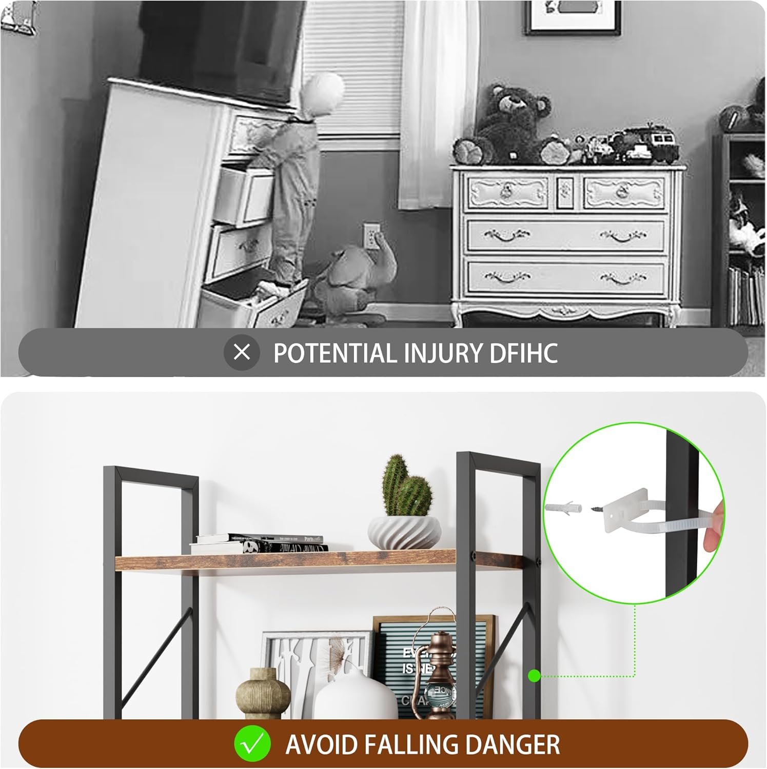 High-Quality Metal Frame Bookcase:Constructed by premium metal and selected particle board, the contemporary metal bookcase is solid, stable, sturdy, and durable. With top notch anti-rust coating, the whole shelf looks more sophisticated. With an excellent metal frame and thick solid panel, each panel of the bookcase can hold up to 40 lbs. Because of the fixed rod assembly, the industrial shelf has strong stability and can perfectly protect your items. No shaking No wobbling.