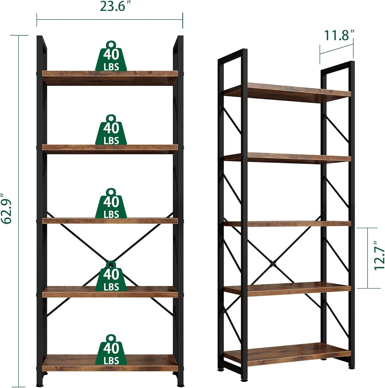 Shintenchi Bookshelf, 5 Tier Bookshelf, Tall Bookcase Shelf for CDs/Movies/Books, Home Office Bookcase Shelf Storage Organizer, Modern Book Shelf for Bedroom/Living Room/Home Office, Rustic Brown