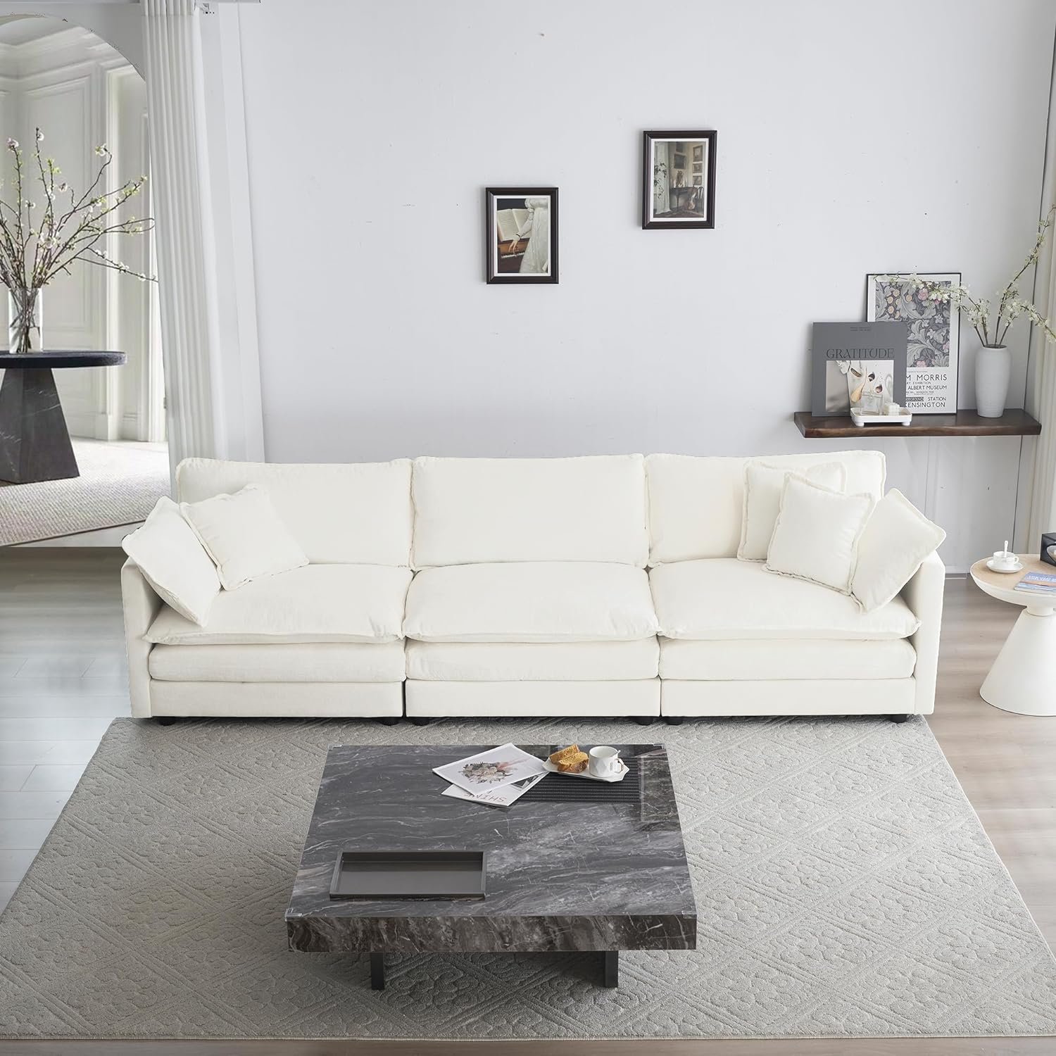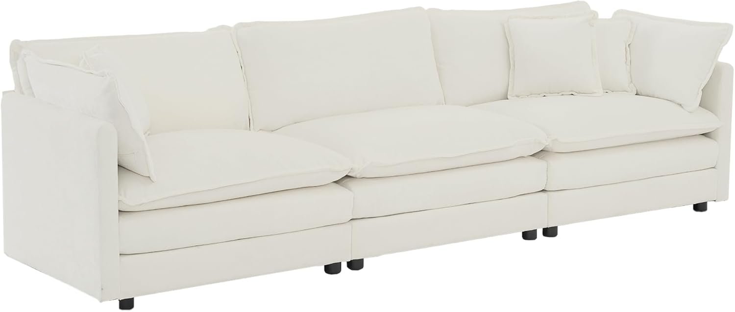 【Ultimate Comfort】This chenille cloud couch adopts high-end breathable chenille fabric and high-quality sponge, with thick foam cushioning on the backrest and seat for ultimate relaxation. Lean back and stretch out your legs on the ottomans when you or your guests need more space. Adjust the position of the cushions wherever you need extra support.