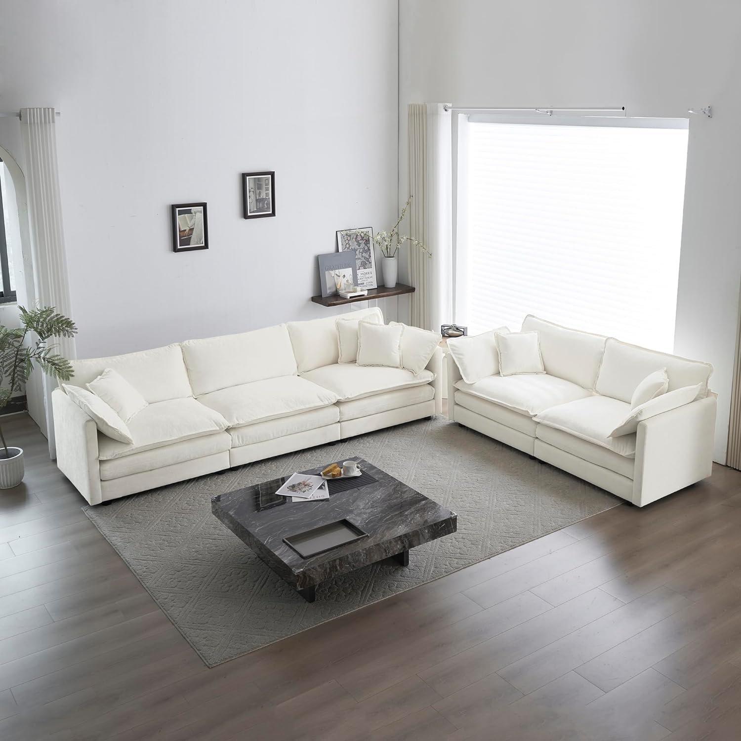 【Suitable for Multiple Places】This modern couch set is solidly constructed with a comfortable surface that is suitable for any indoor environment. The combination sofa with deep foam padding can be fully functional in various rooms, perfect for living room, bedroom, guest room, office, apartment, etc.